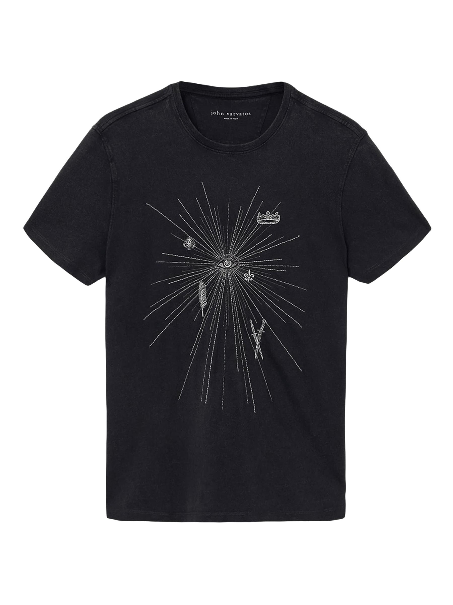 Crafted of cotton jersey, this crewneck T-shirt from John Varvatos showcases a starburst design with beaded-stitch embroidery at the front.Crewneck Short sleeves Pulls over 100% Cotton Machine wash Imported