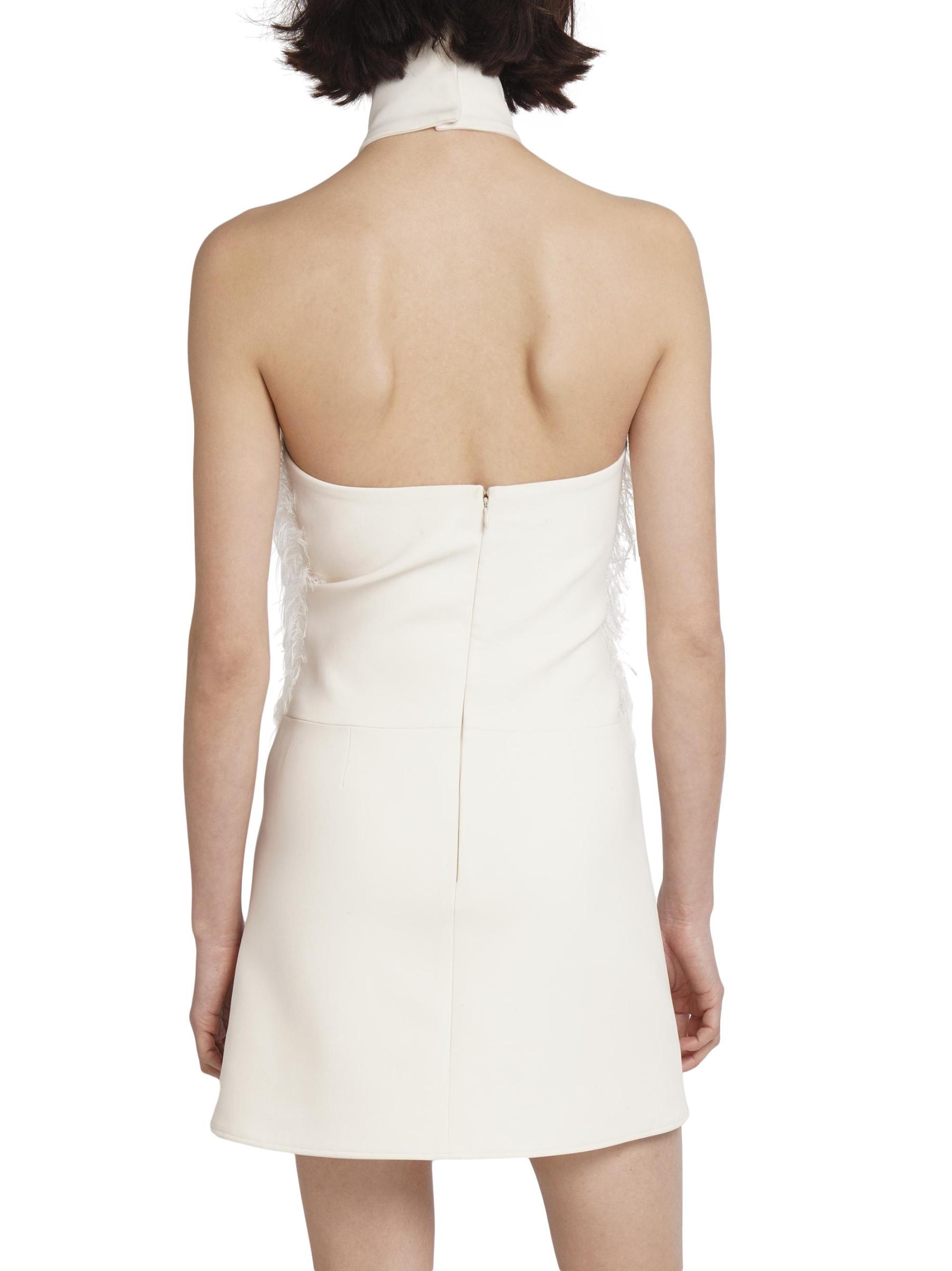 Defined by delicate feather-like thread detailing, this Courreges minidress features a banded halterneck and an open back.