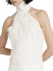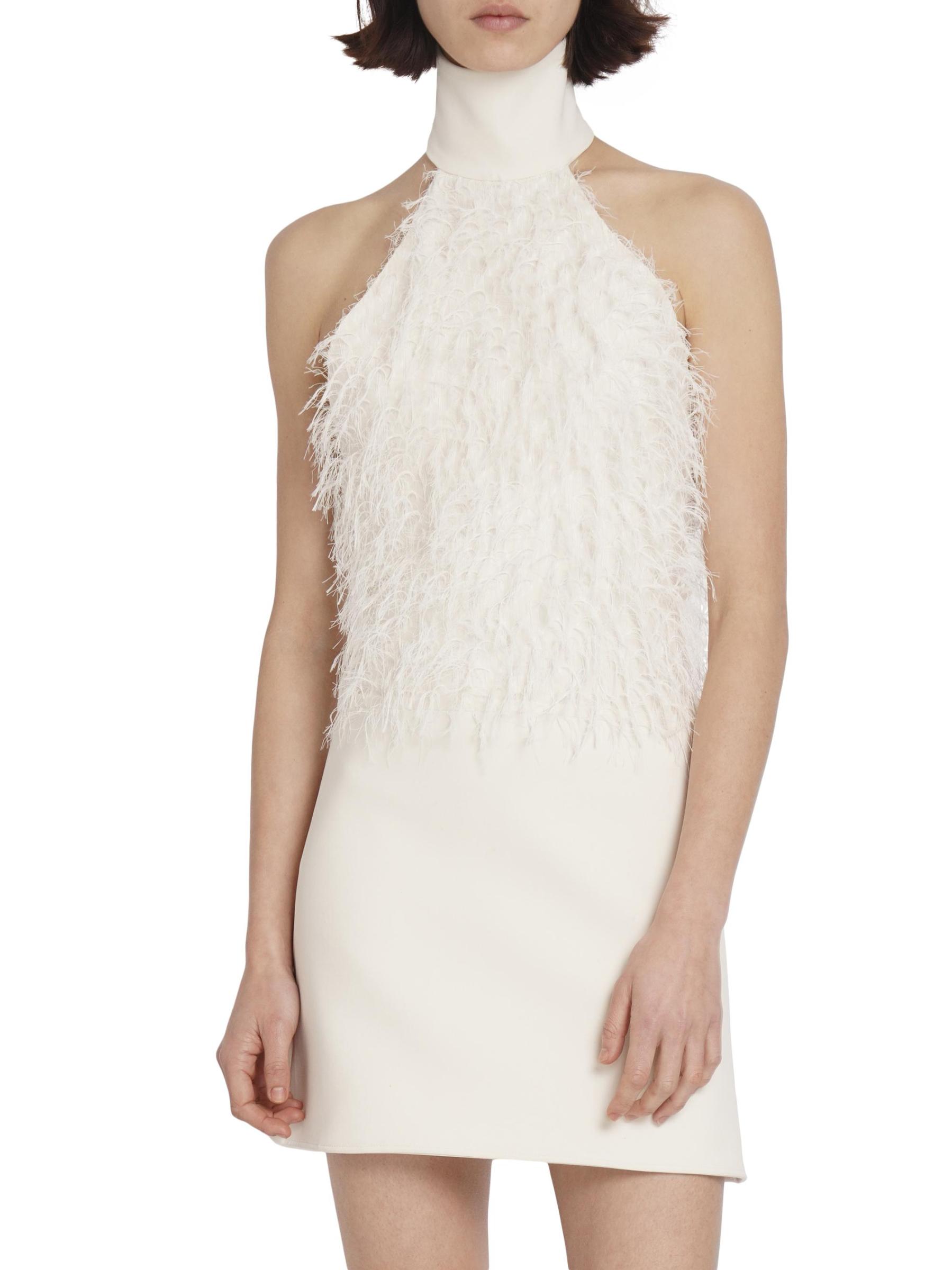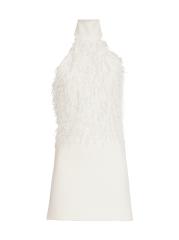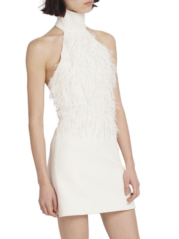Defined by delicate feather-like thread detailing, this Courreges minidress features a banded halterneck and an open back.Banded halterneck Sleeveless Back zipper closure 56% acetate/44% viscose Combo: 89% polyester/11% polyurethane Lining: 100% cupro Dry clean Made in Italy