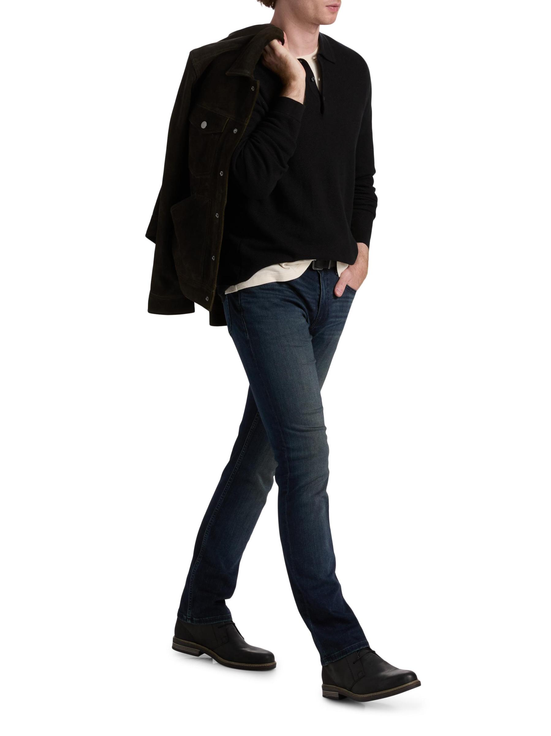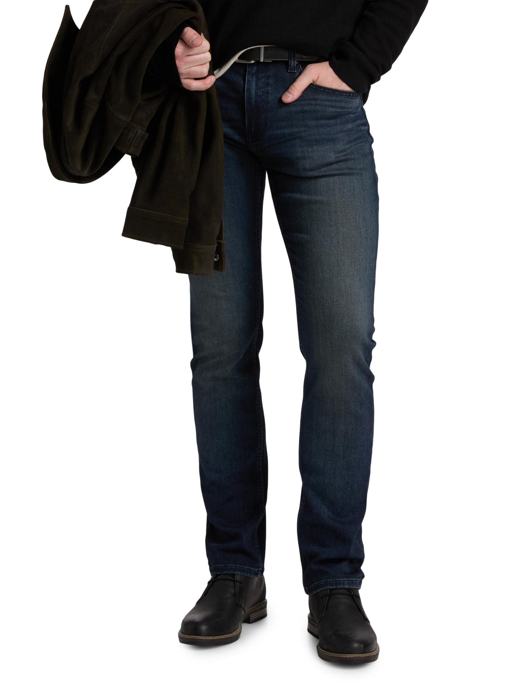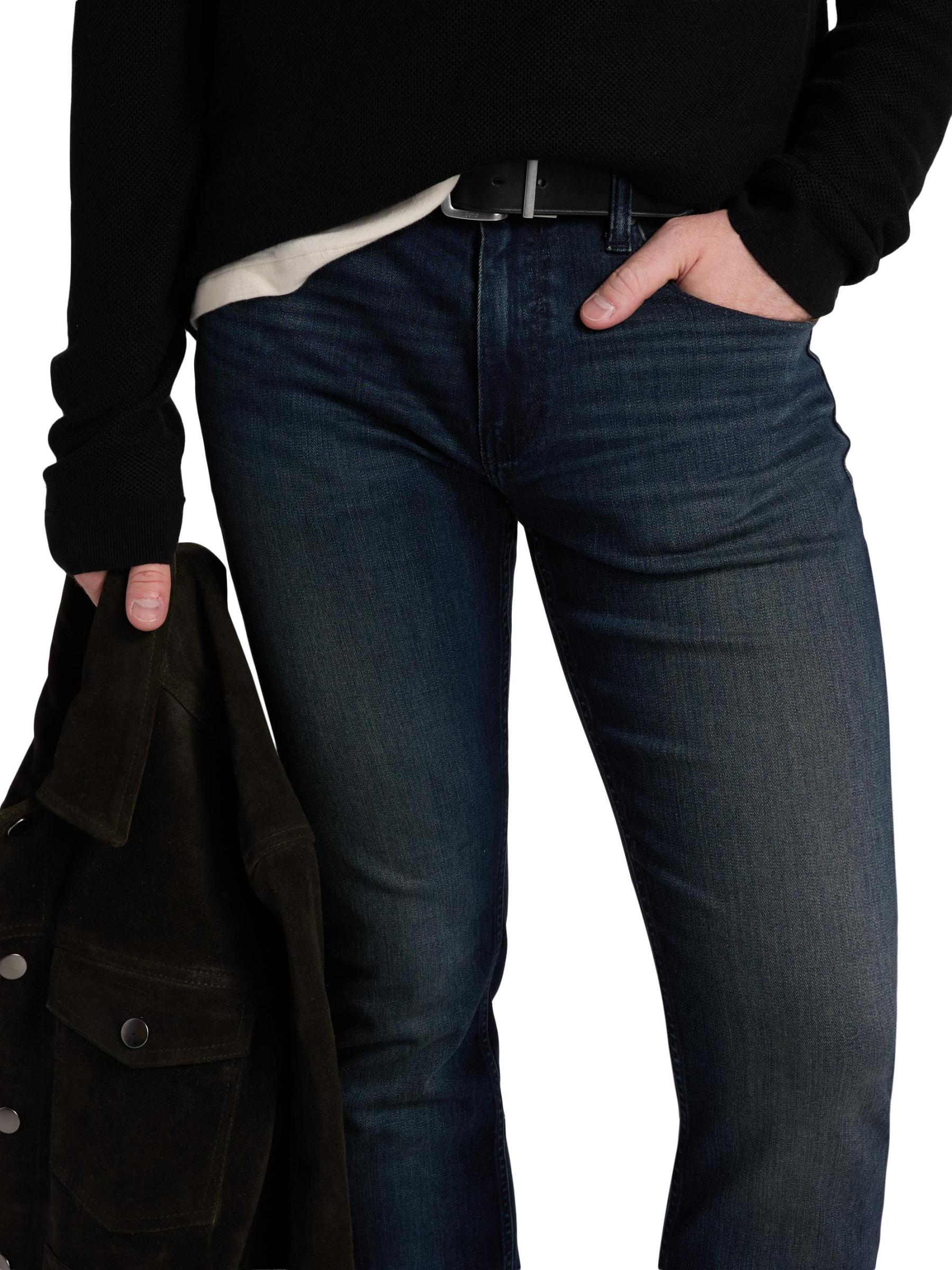 Crafted of stretch denim, these Federal jeans from Paige are cut for a slim fit with a straight-leg silhouette and classic five-pocket design.