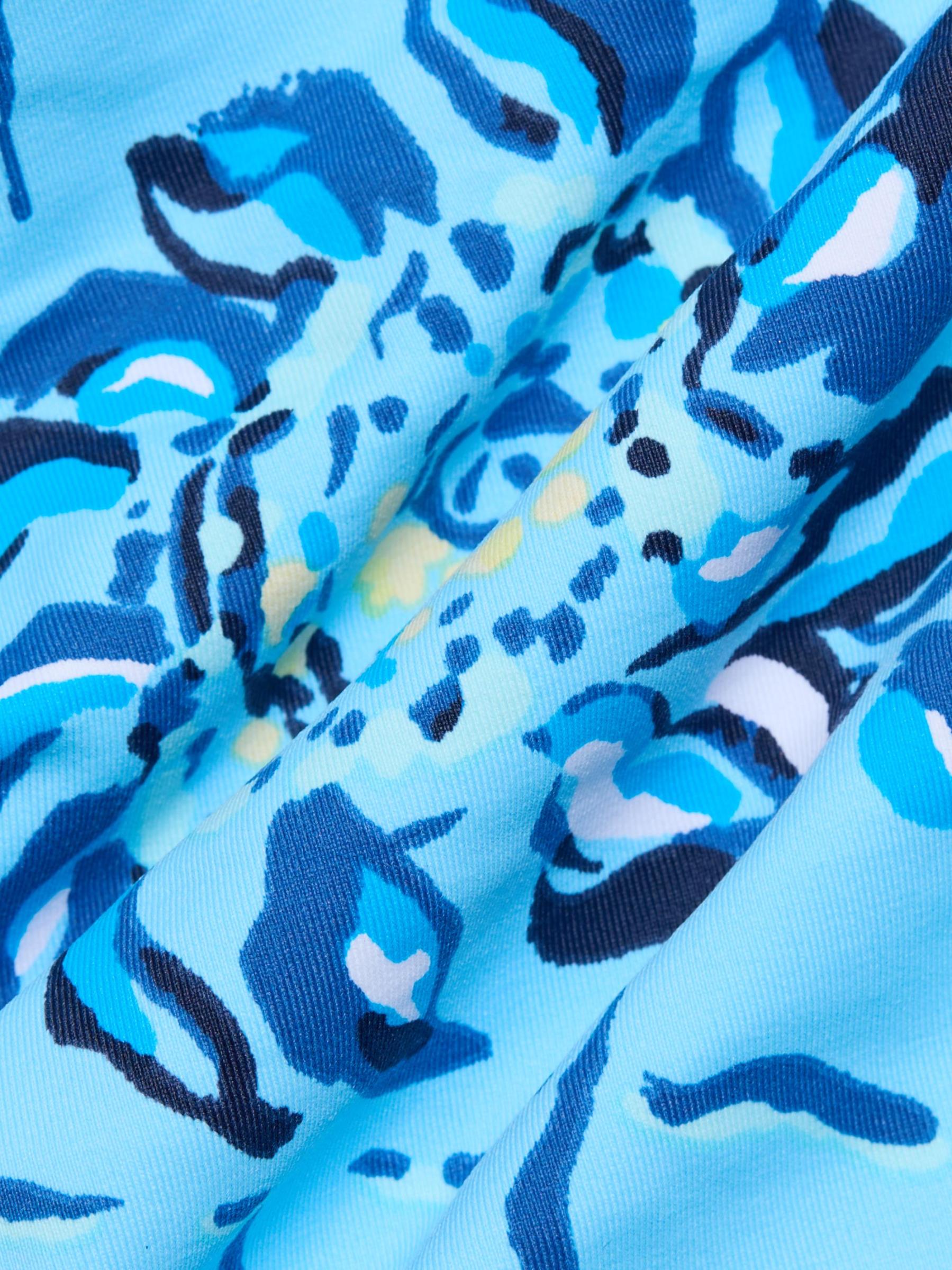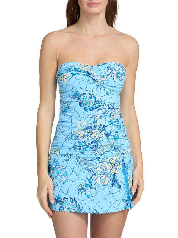 The Flamenco tankini top from Lilly Pulitzer features a Bellevue Breakers Beach Print with a twisted front and a removable halter strapSweetheart neckline Removable halter strap Pulls over 75% nylon/25% spandex Hand wash Made in USA