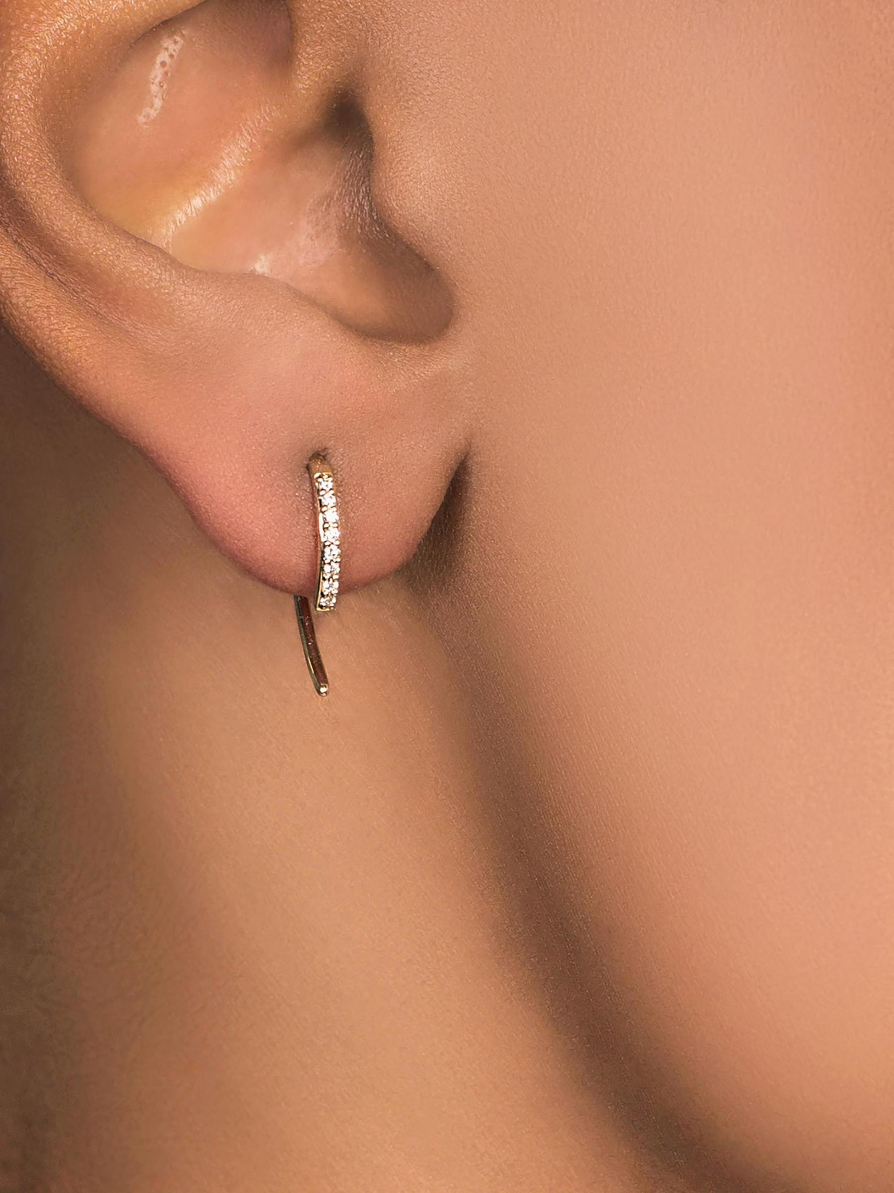 Flawless 14K Yellow Gold Diamond Mini Hooked on Hoops