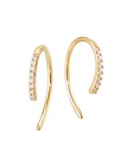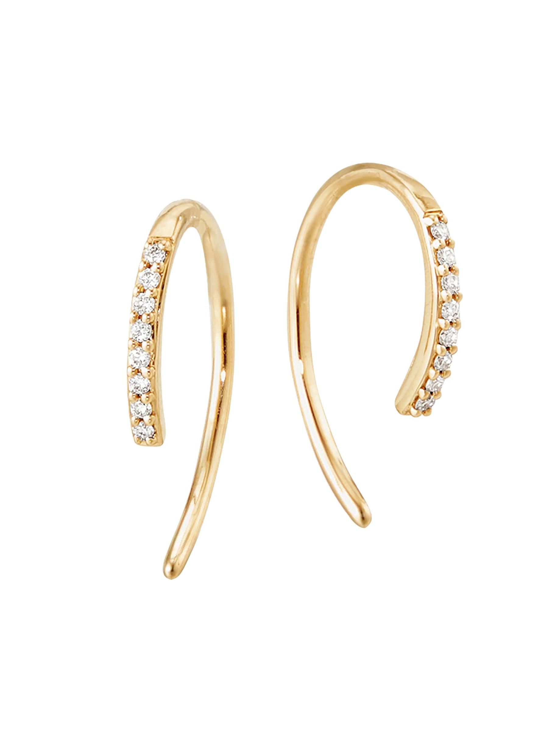 Structural hoop earrings with a pave finish.14K yellow gold Diamonds, 0.06 tcw Diamond clarity, GHVSSI1 Thread-through back Imported