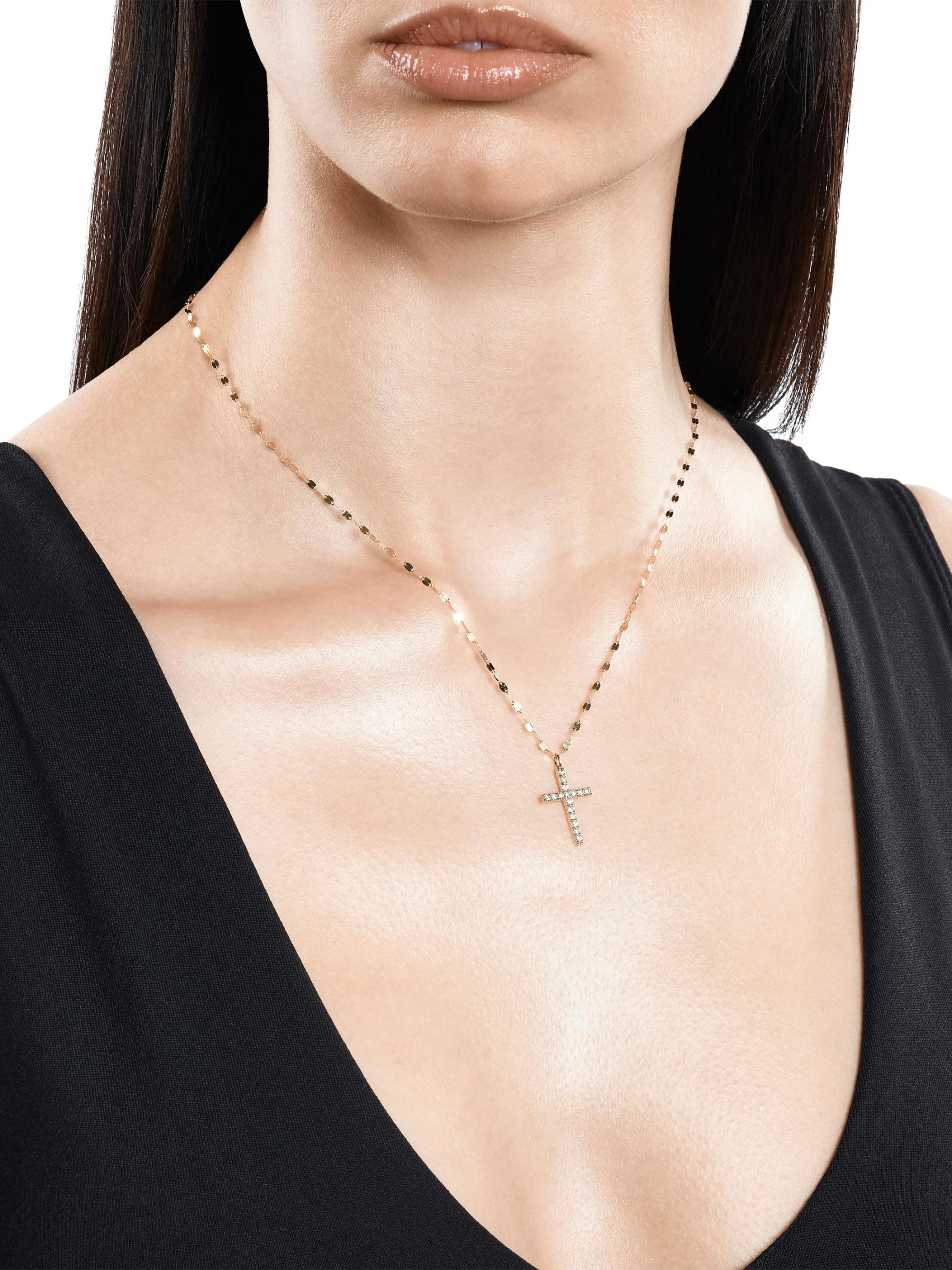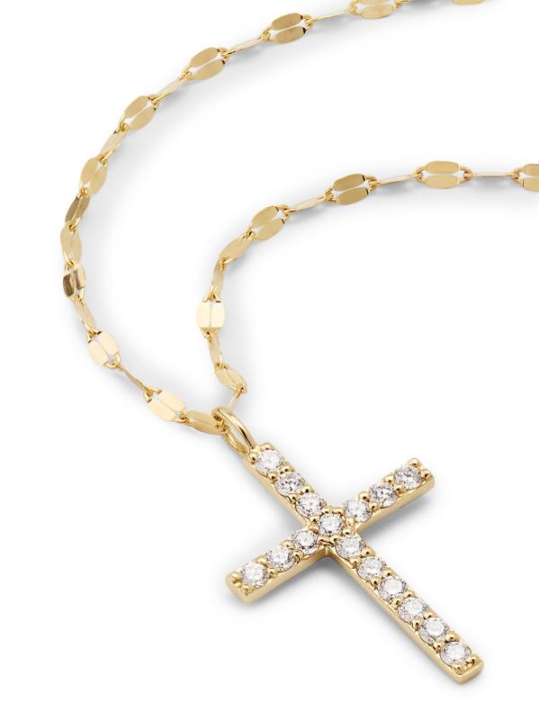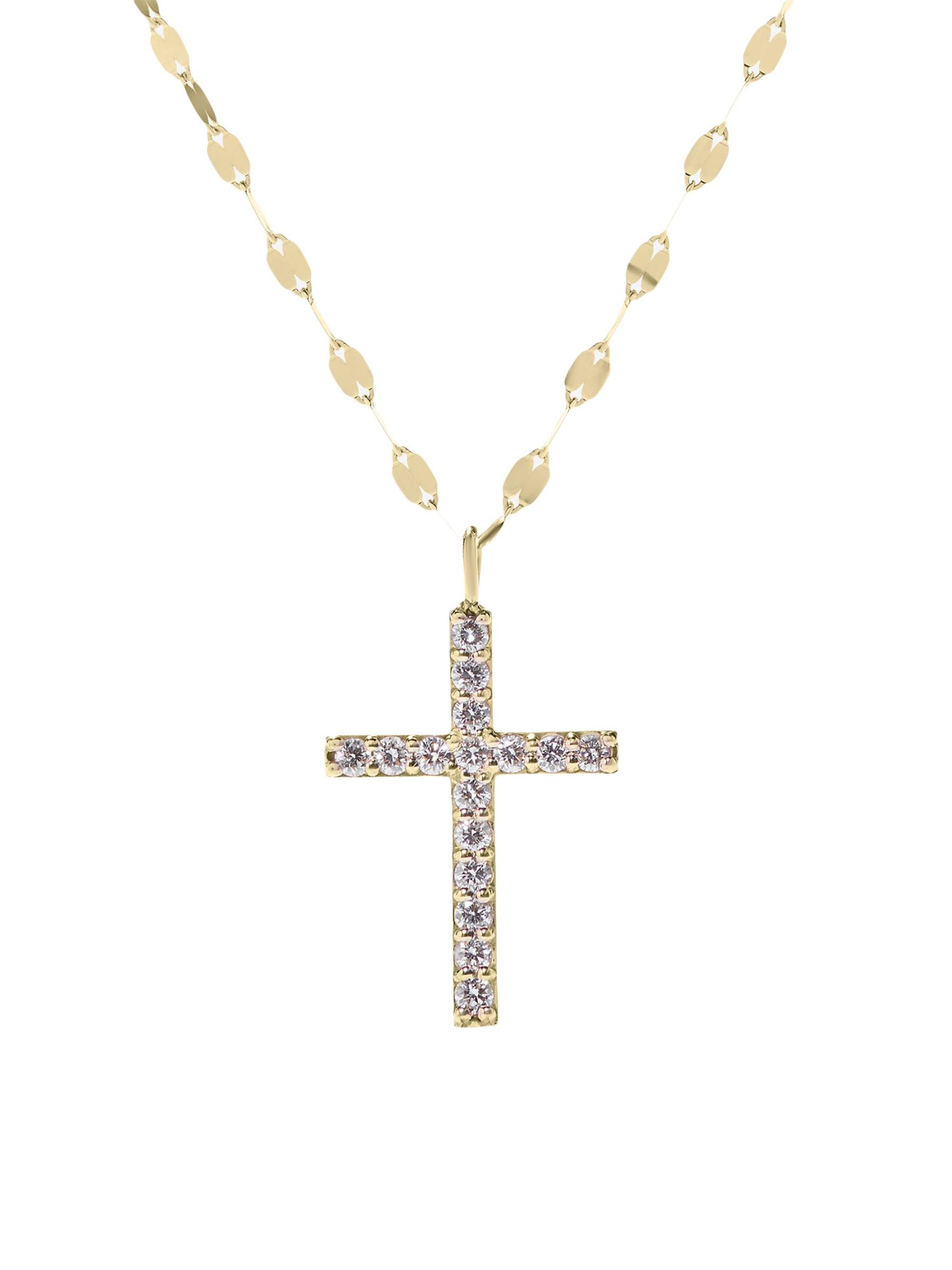 Crafted of polished 14K yellow gold, Lana's Flawless Everyday necklace features a shimmering diamond cross pendant.