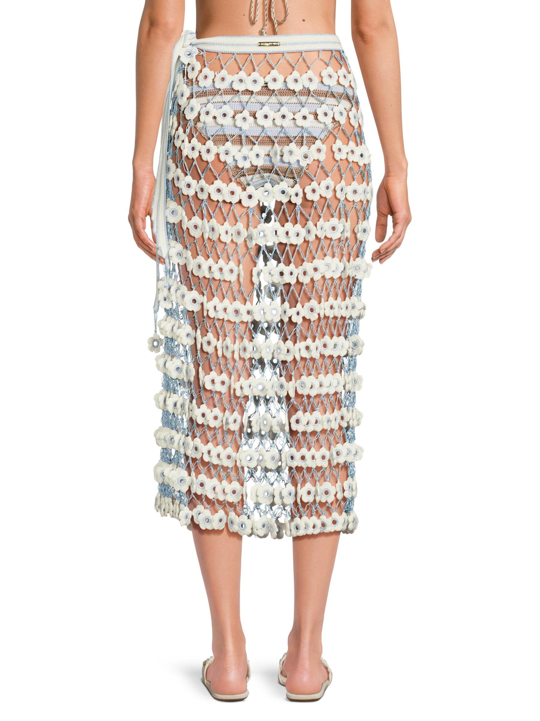 My Beachy Side's Fleur wrap-style cover-up maxi skirt is hand-crocheted and features a floral pattern.