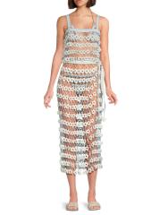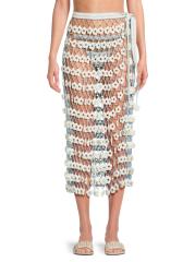 My Beachy Side's Fleur wrap-style cover-up maxi skirt is hand-crocheted and features a floral pattern.Banded waist Side tie closure 60% cotton/40% acrylic Dry clean Imported