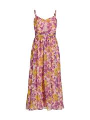 LDT's sleeveless floral midi-dress is elevated by a sleek chest cut-out and a wide pleated banded waist.Plunging V-neck Adjustable spaghetti straps Chest cut-out Wide banded waist Square back Concealed back zip closure 100% polyester Dry clean Imported