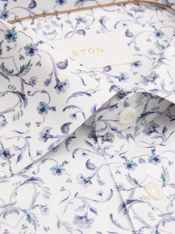 Eton’s contemporary-fit formal shirt is crafted of high-performance, crease-resistant cotton in a floral damask pattern.Spread collar Long sleeves, convertible button barrel to French cuffs Shirttail hem Back darts Button front closure 100% Cotton Dry clean Imported