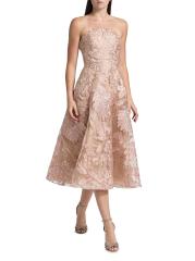 This strapless cocktail dress from Naeem Khan flaunts delicate floral embroidery and a curved neckline.Curved neckline Strapless Back zip closure 50% rayon/22% polyester/16% polyester cord/12% nylon Spot clean Made in USA