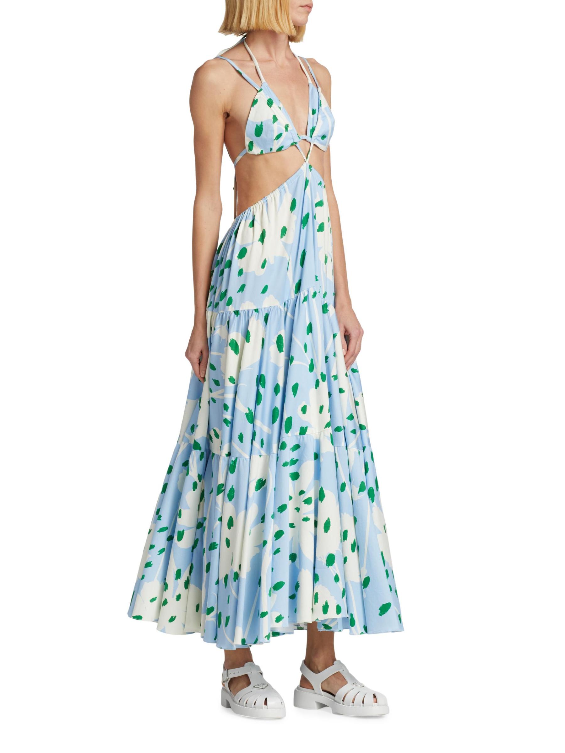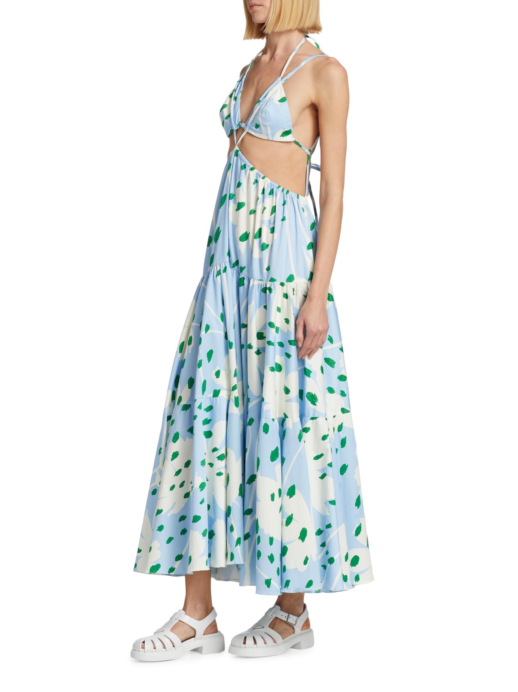 Monse's maxi dress is crafted of stretch cotton poplin and features a strappy cut-out silhouette. This head-turning piece is finished with a double-layered triangle bra top.