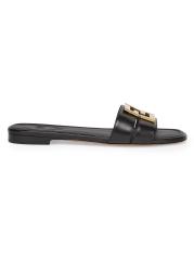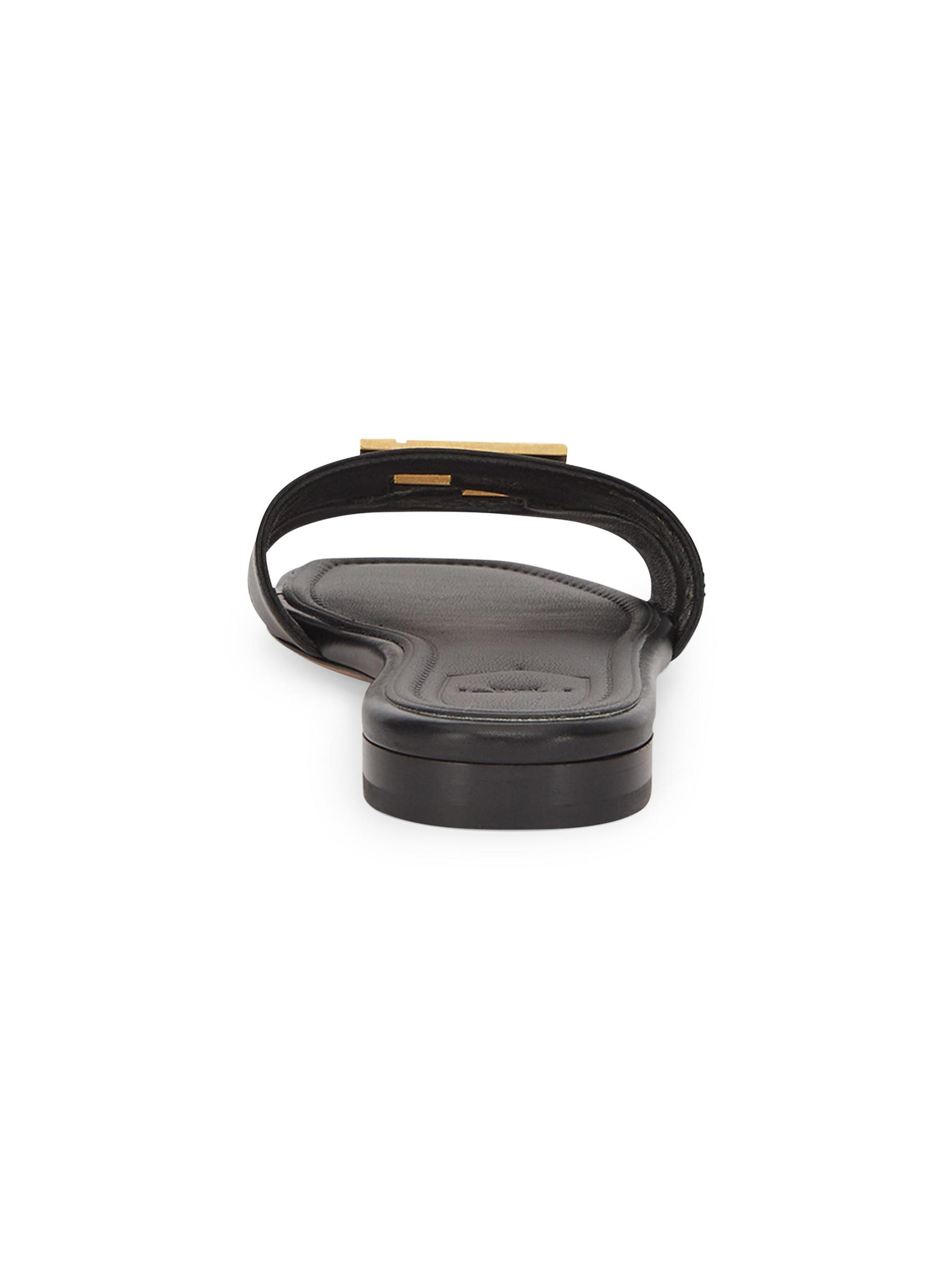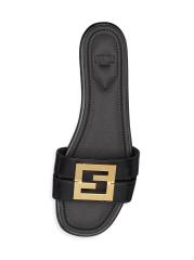 The Fold leather slip-on sandals from Fendi are crafted of smooth calfskin and topped with a goldtone logo charm.Open toe Slips on Leather upper Leather lining Rubber sole Made in Italy