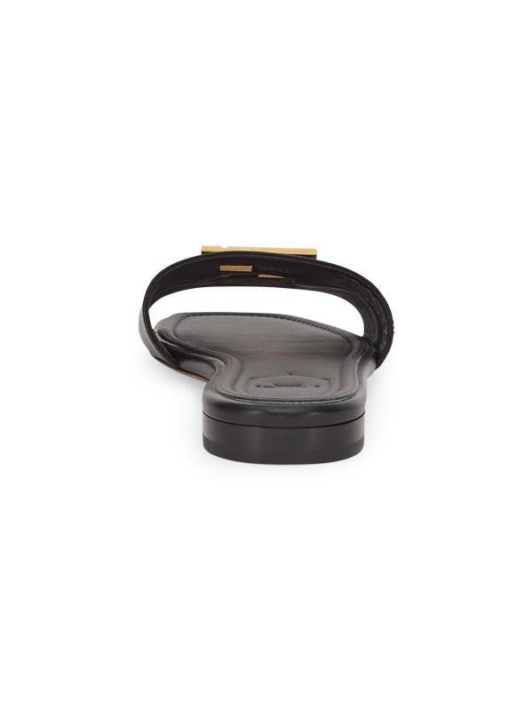 The Fold leather slip-on sandals from Fendi are crafted of smooth calfskin and topped with a goldtone logo charm.