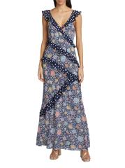 Printed with a romantic floral motif, Rixo's Gail maxi dress showcases a deep V-neck and adjustable straps. This style features a ruffled trim and backless silhouette.