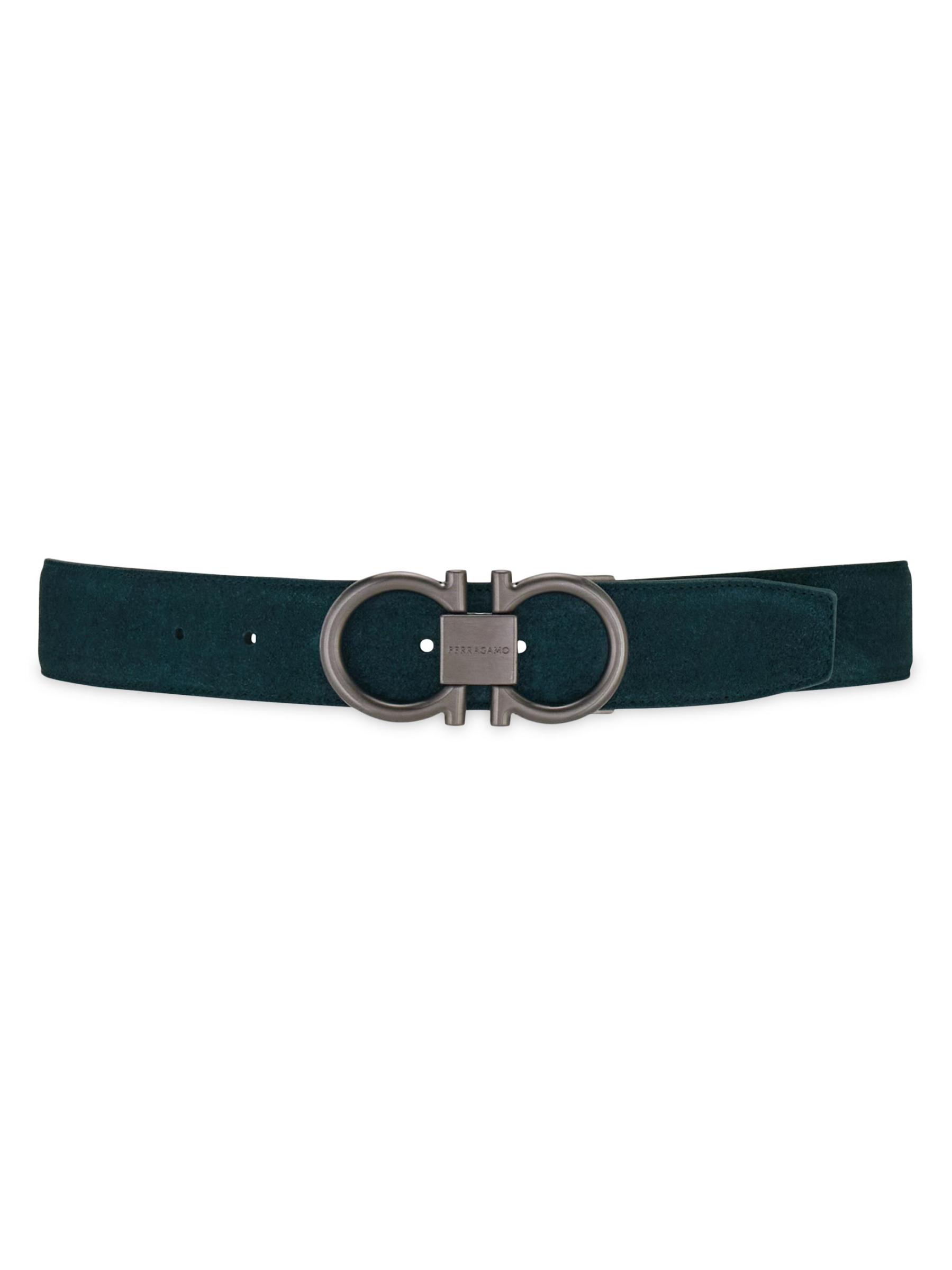 Crafted of suede, this FERRAGAMO belt features a gunmetal Gancini buckle.