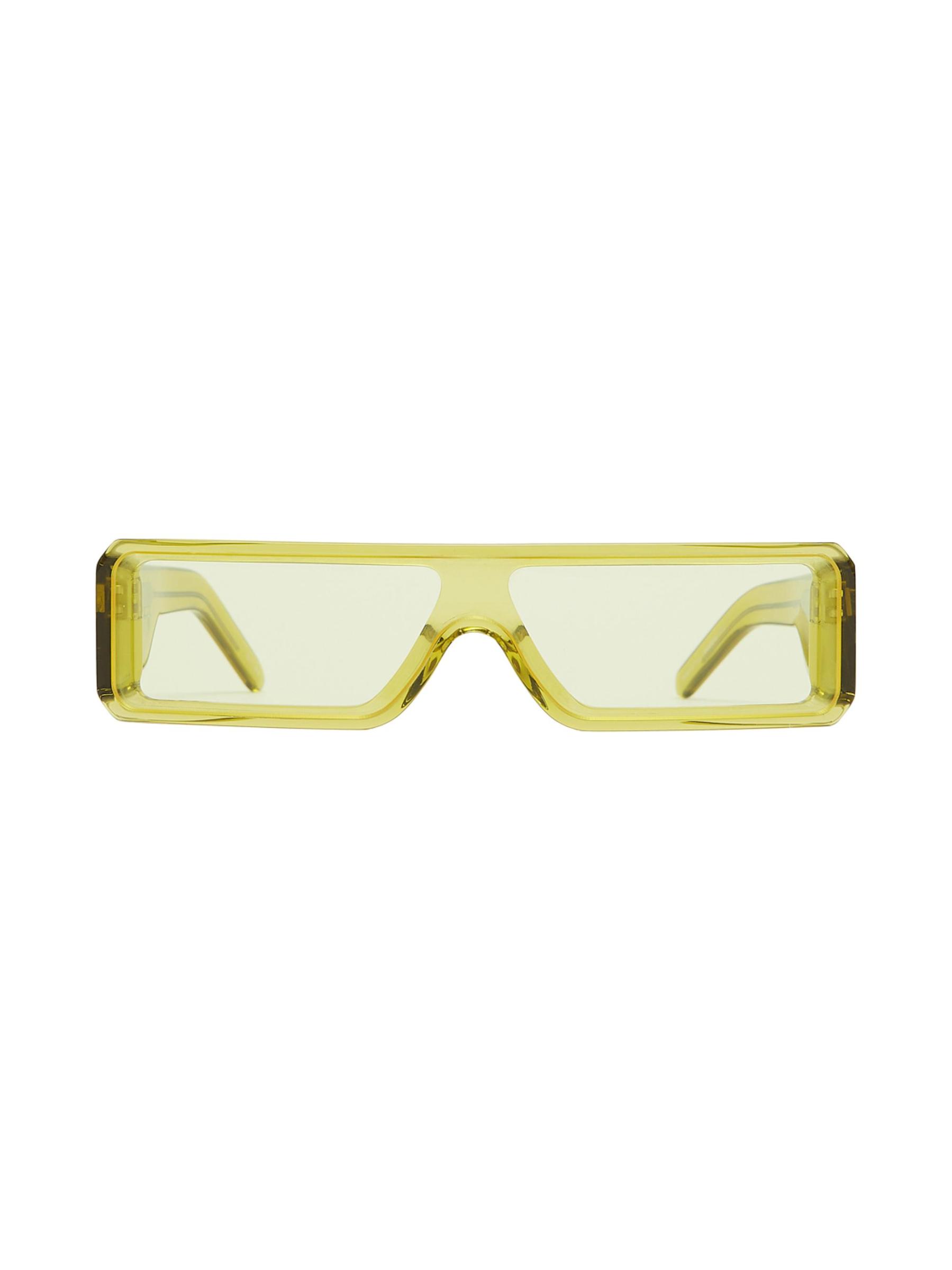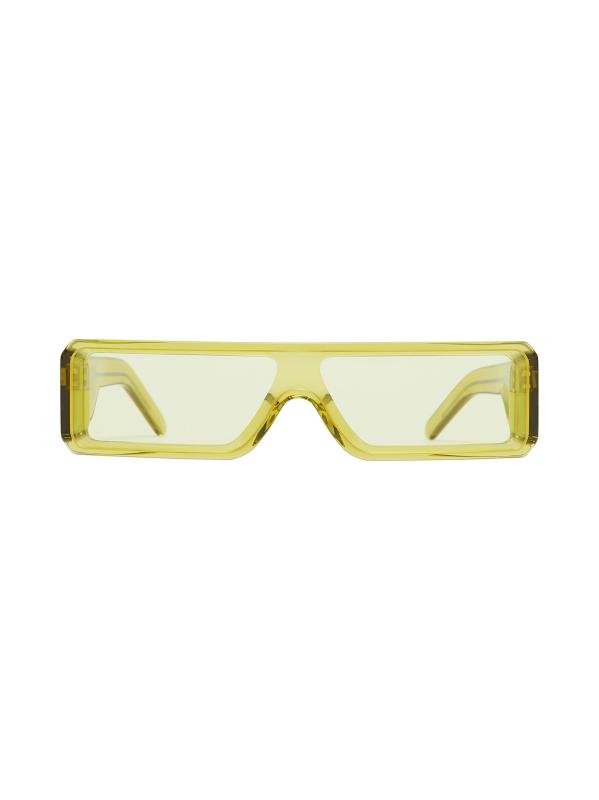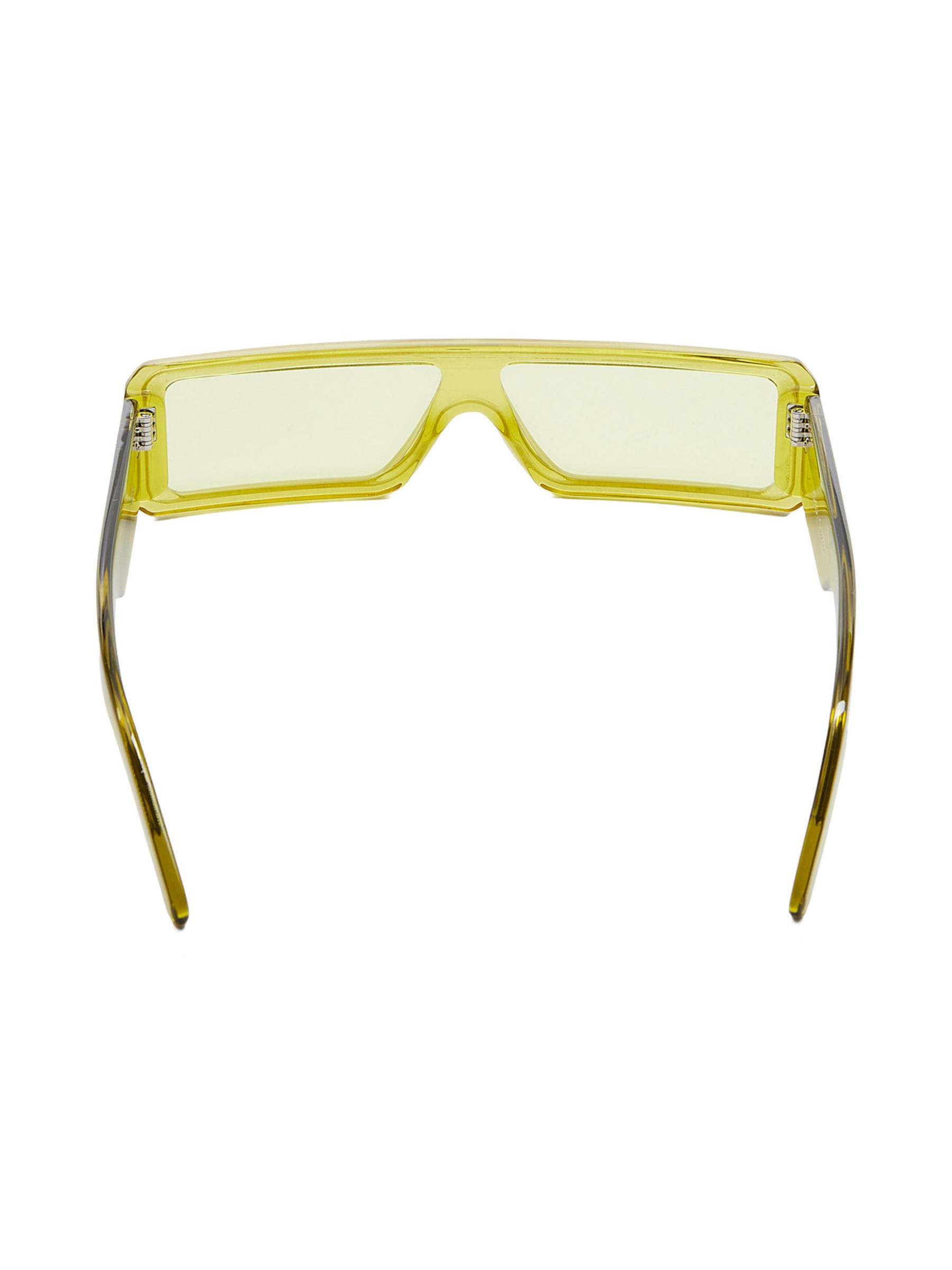 Rick Owen's sleek sunglasses feature slim rectangular frames and the signature trip of silvertone riverts on each temple.100% UV standard Nylon lens Acetate Made in Japan