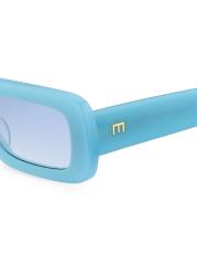 Elisa Johnson's Gigi sunglasses feature a rectangular silhouette, solid lenses, and logo lettering at the temples.Solid lenses Acetate Imported