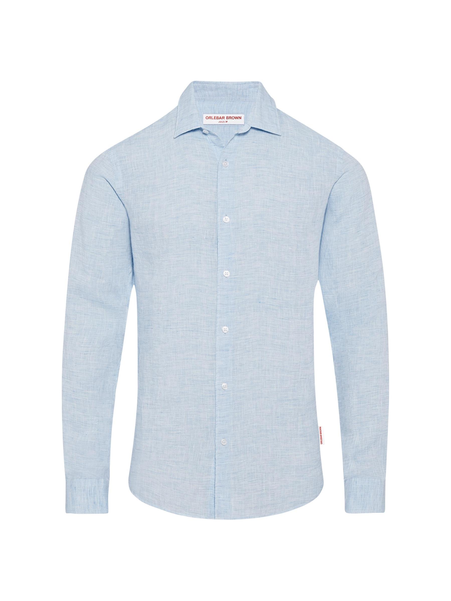 Crafted of breathable linen in Portugal, Orlebar Brown's Giles shirt is styled with a spread collar, long sleeves with button barrel cuffs, and a curved hem. Yoked back shoulders lend added shape to this button-front style.Spread collar Long sleeves, button barrel cuffs Yoked back shoulders Curved hem Button front closure 100% linen Dry clean Made in Portugal