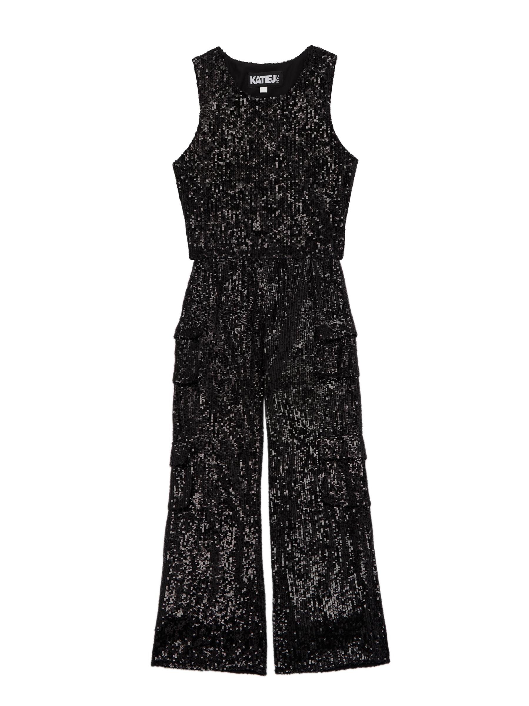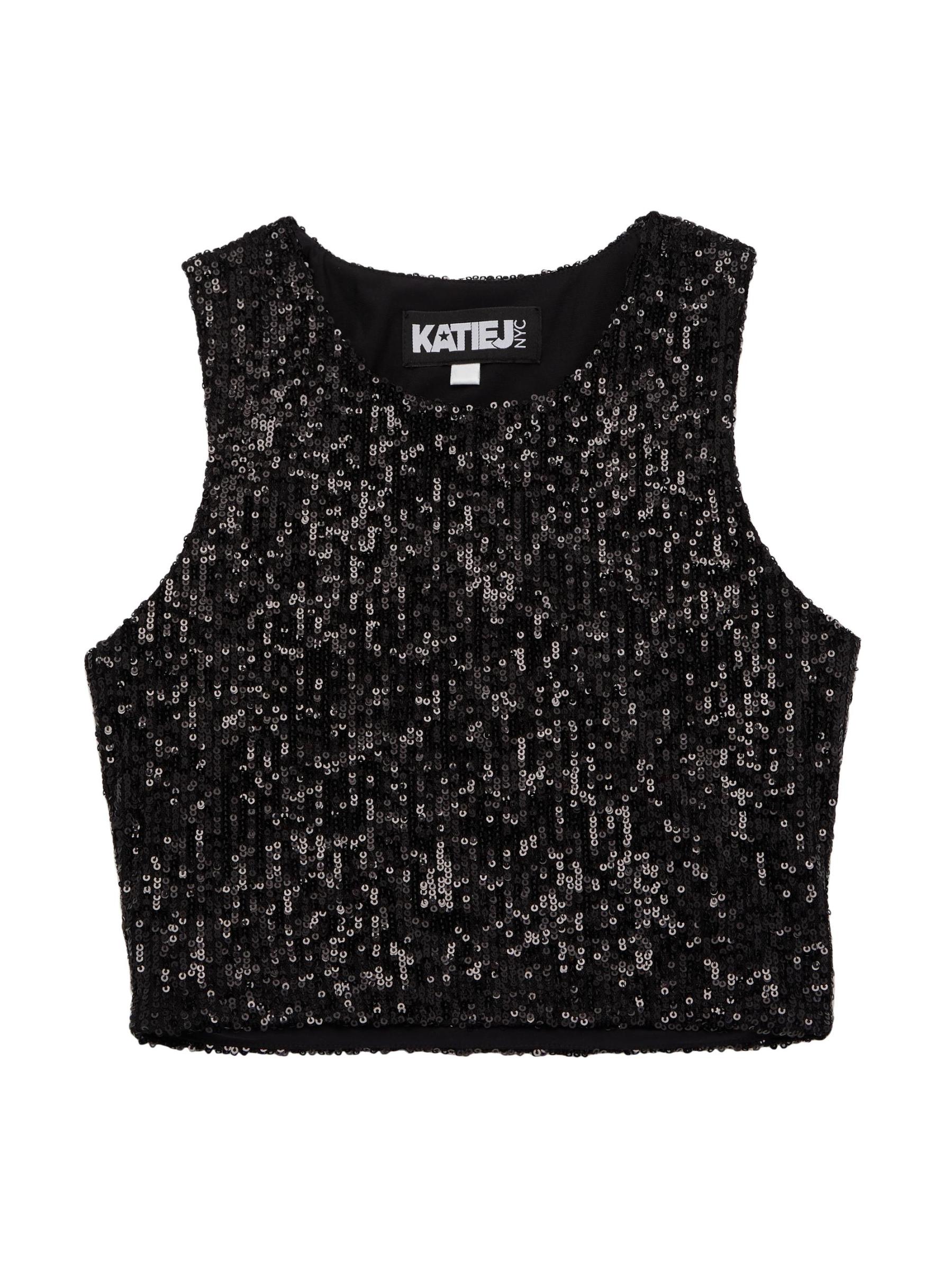 Made in full sequin stretch fabric, this tank top by KatieJ NYC is cut in a cropped silhouette.Scoopneck Sleeveless Pulls over 95% polyester/5% spandex Lining: 85% nylon/15% spandex Hand wash Imported