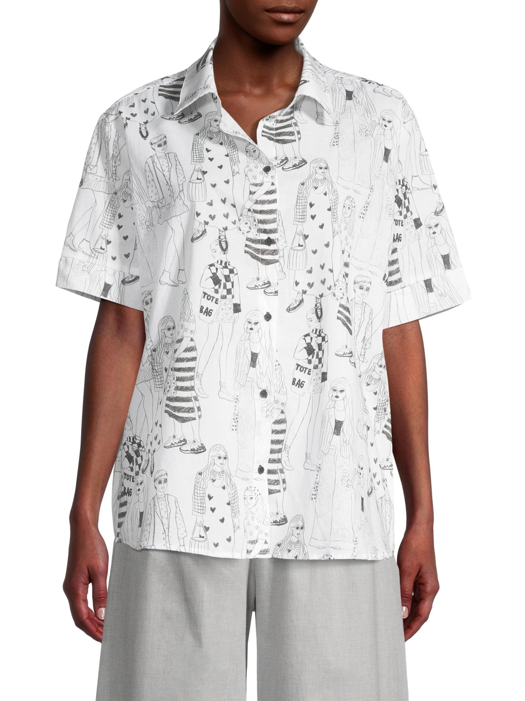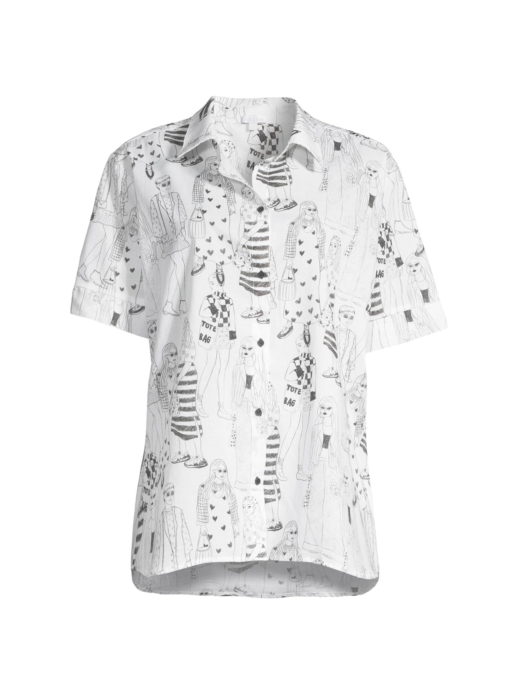 The Gracia sleep shirt from Andine features an oversized silhouette crafted of supima cotton. A sketch print elevates the look.Spread collar Short sleeves Button front closure 100% supima cotton Hand wash Made in USA