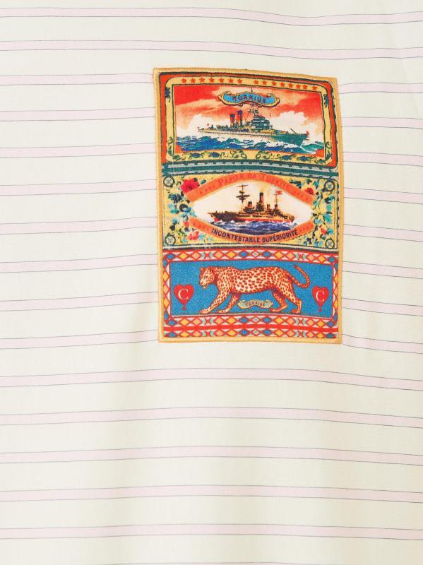 Graphic-Patch Striped Cotton T-Shirt