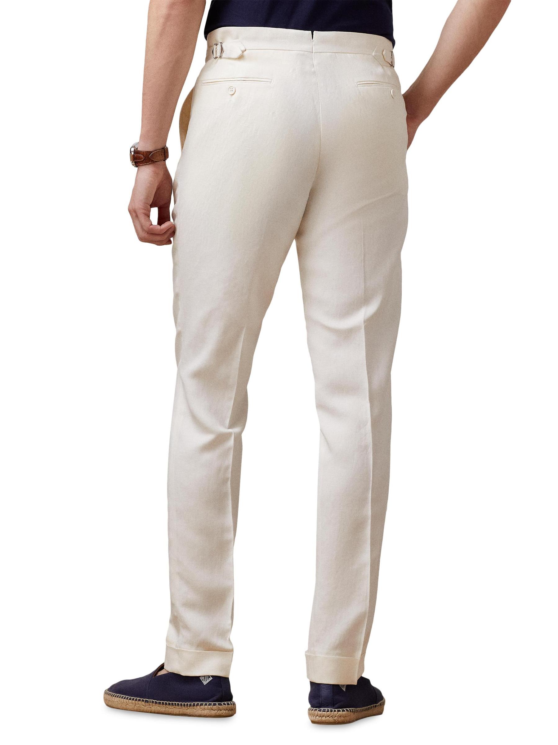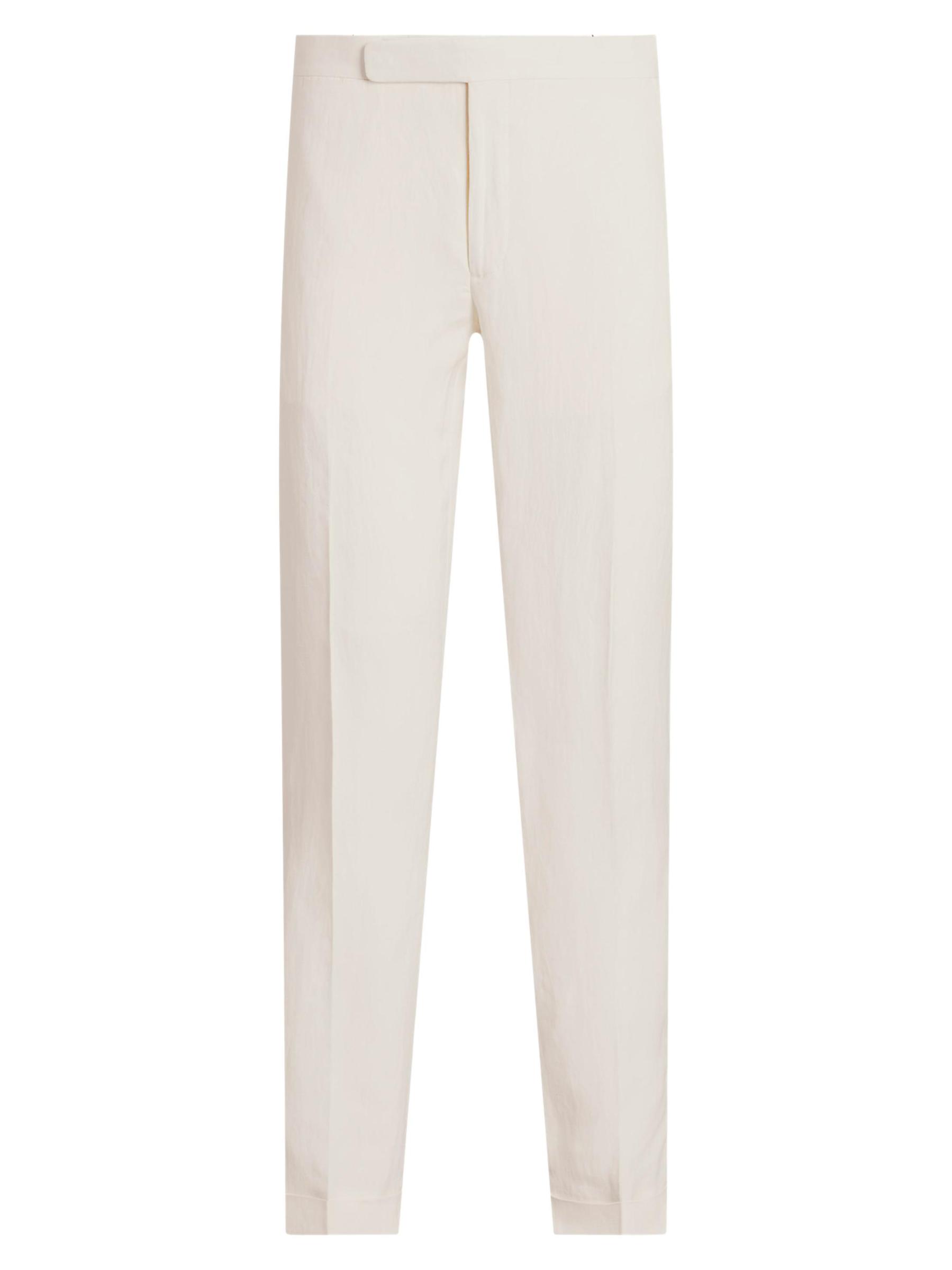 Ralph Lauren Purple Label's Gregory trousers are hand-tailored in Italy using a custom-developed lightweight silk-and-linen cloth. An extended tab waistband with side adjusters lends elevated detail to this crease-front silhouette.