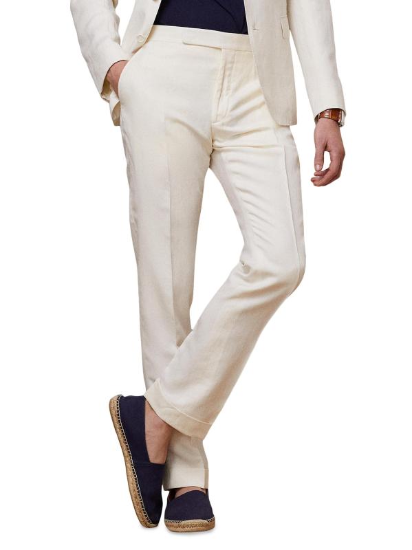 Ralph Lauren Purple Label's Gregory trousers are hand-tailored in Italy using a custom-developed lightweight silk-and-linen cloth. An extended tab waistband with side adjusters lends elevated detail to this crease-front silhouette.Extended tab waistband, side waistband adjusters Side slant pockets Back button-through welt pockets Rolled cuffs Zip fly hook-and-bar closure 51% silk/49% linen Lining: 100% Viscose Dry clean Made in Italy