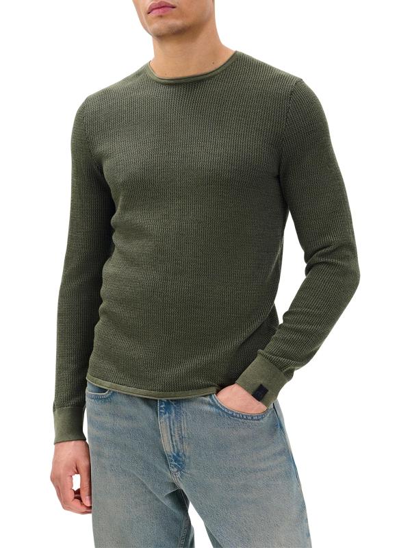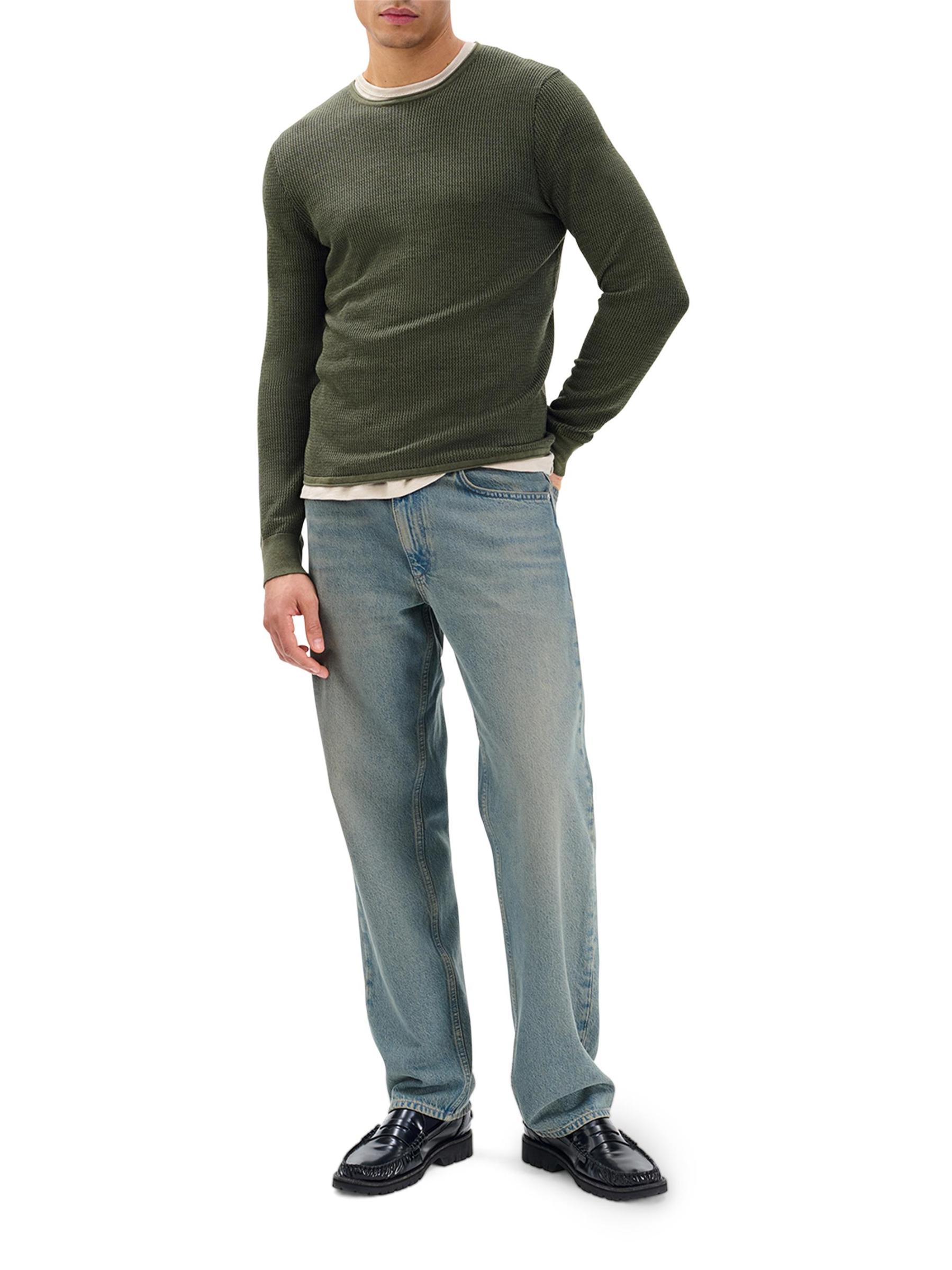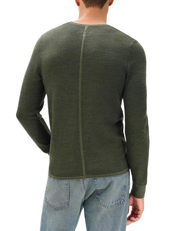 bone is knit from a wool blend and styled with a crewneck.Crewneck Long sleeves Straight hem Pulls over 75% wool/25% lyocell Dry clean Imported
