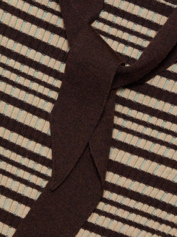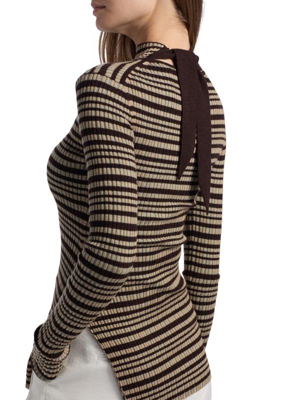 From the Grow Collection. This striped merino wool-blend Arella sweater from Nanushka features a turtleneck with back tie detail and a side slit.Turtleneck Long sleeves Side slit Pulls over 95% merino wool/4% nylon/1% spandex Hand wash Imported