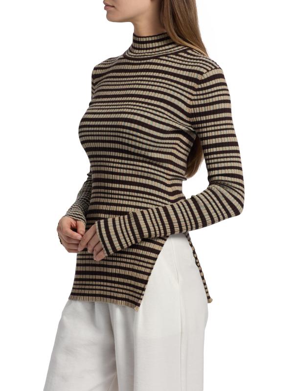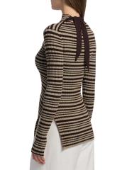 From the Grow Collection. This striped merino wool-blend Arella sweater from Nanushka features a turtleneck with back tie detail and a side slit.