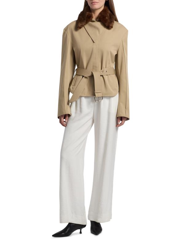 From the Grow Collection. Nanushka's Henka shirt jacket features a faux-fur spread collar and detachable belt.Spread collar Drop shoulders Long sleeves Belted Concealed button-front closure 100% Cotton Combo: 83% polyamide/17% elastane Lining: 70% cotton/30% polyamide Fur type: Faux Machine wash Imported