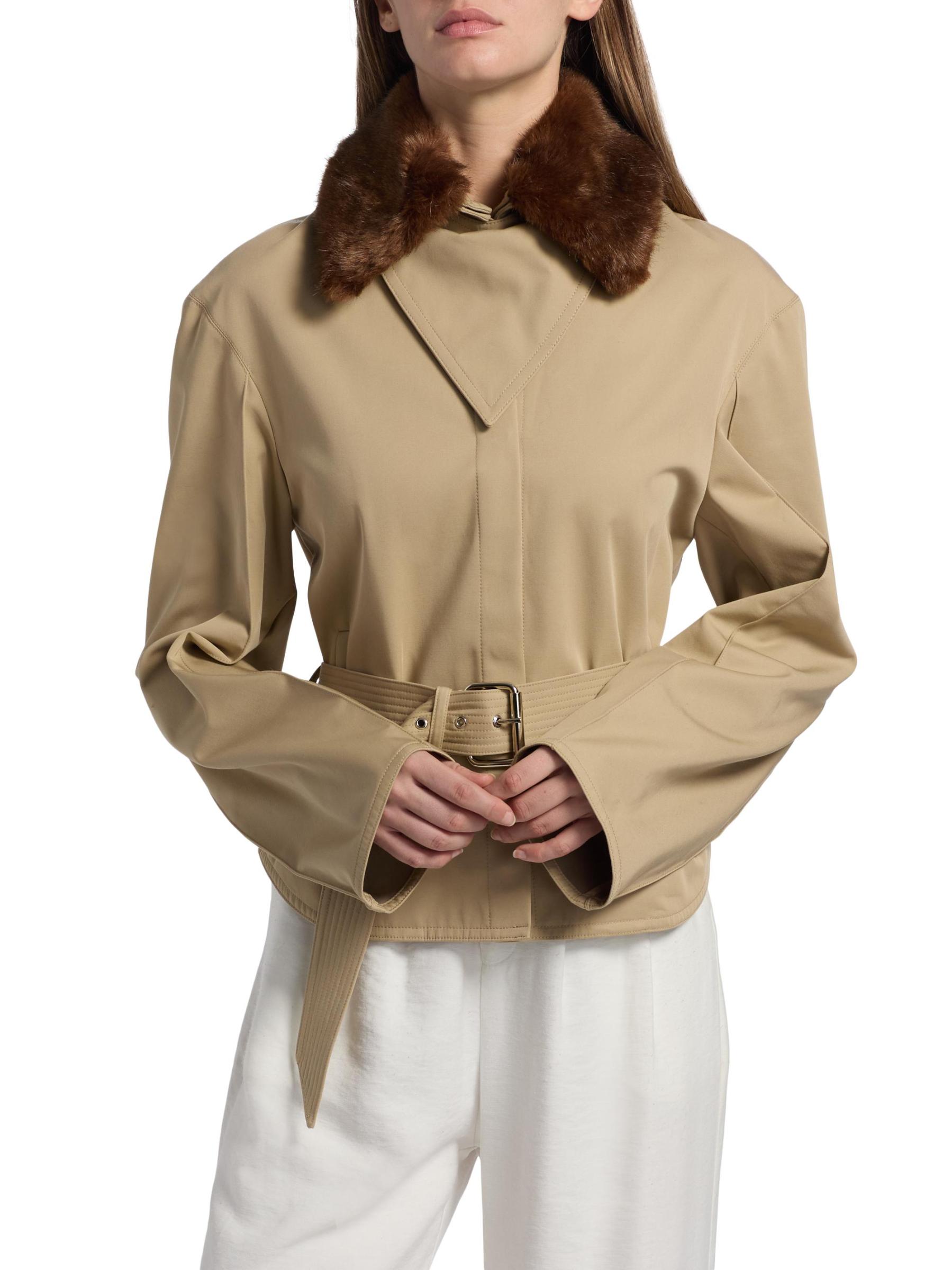 From the Grow Collection. Nanushka's Henka shirt jacket features a faux-fur spread collar and detachable belt.