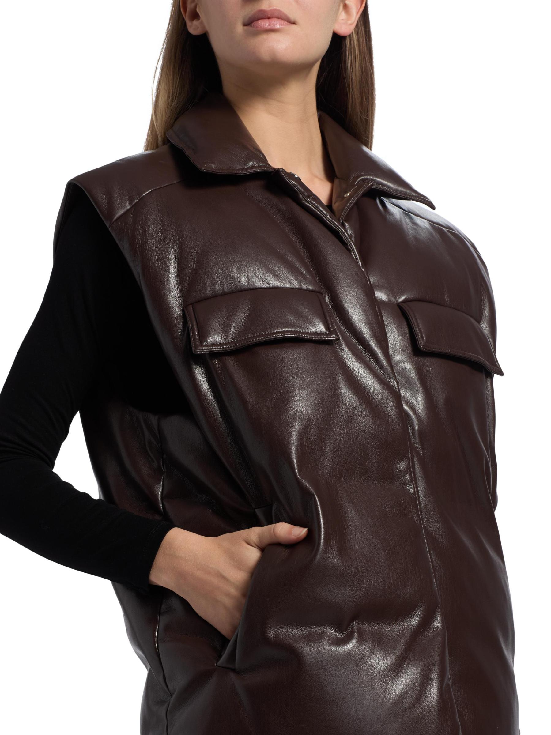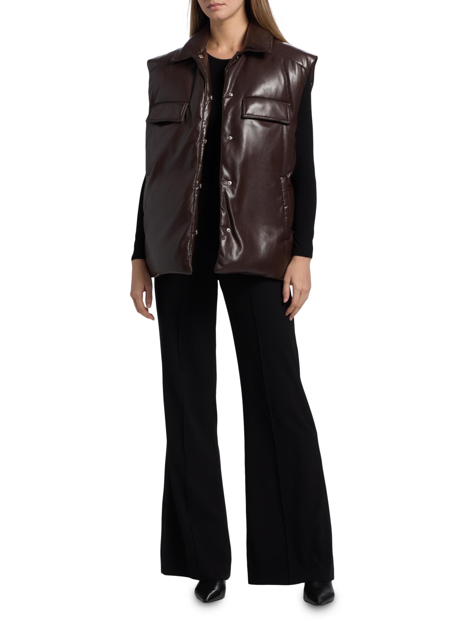 From the Grow Collection. Crafted of faux leather, this Karlene padded vest from Nanushka is styled with a spread collar, side flap pockets, and front snap closure.Spread collar Sleeveless Side flap pockets Front snap closure 100% Polyurethane Combo: 100% polyester Lining: 100% Viscose Dry clean Imported