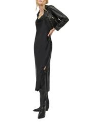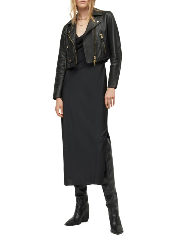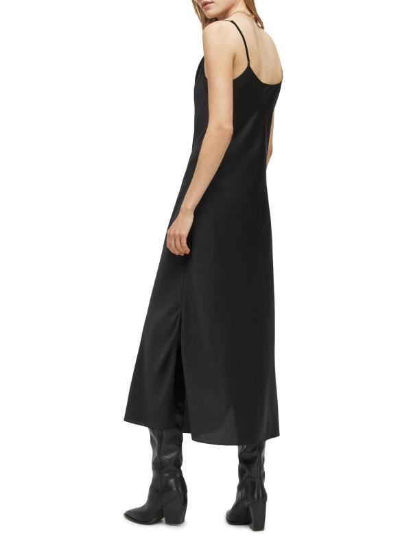 AllSaints’ Hadley slipdress is crafted of satin and features a cowl neck, side slit, and plunging back.