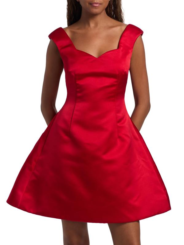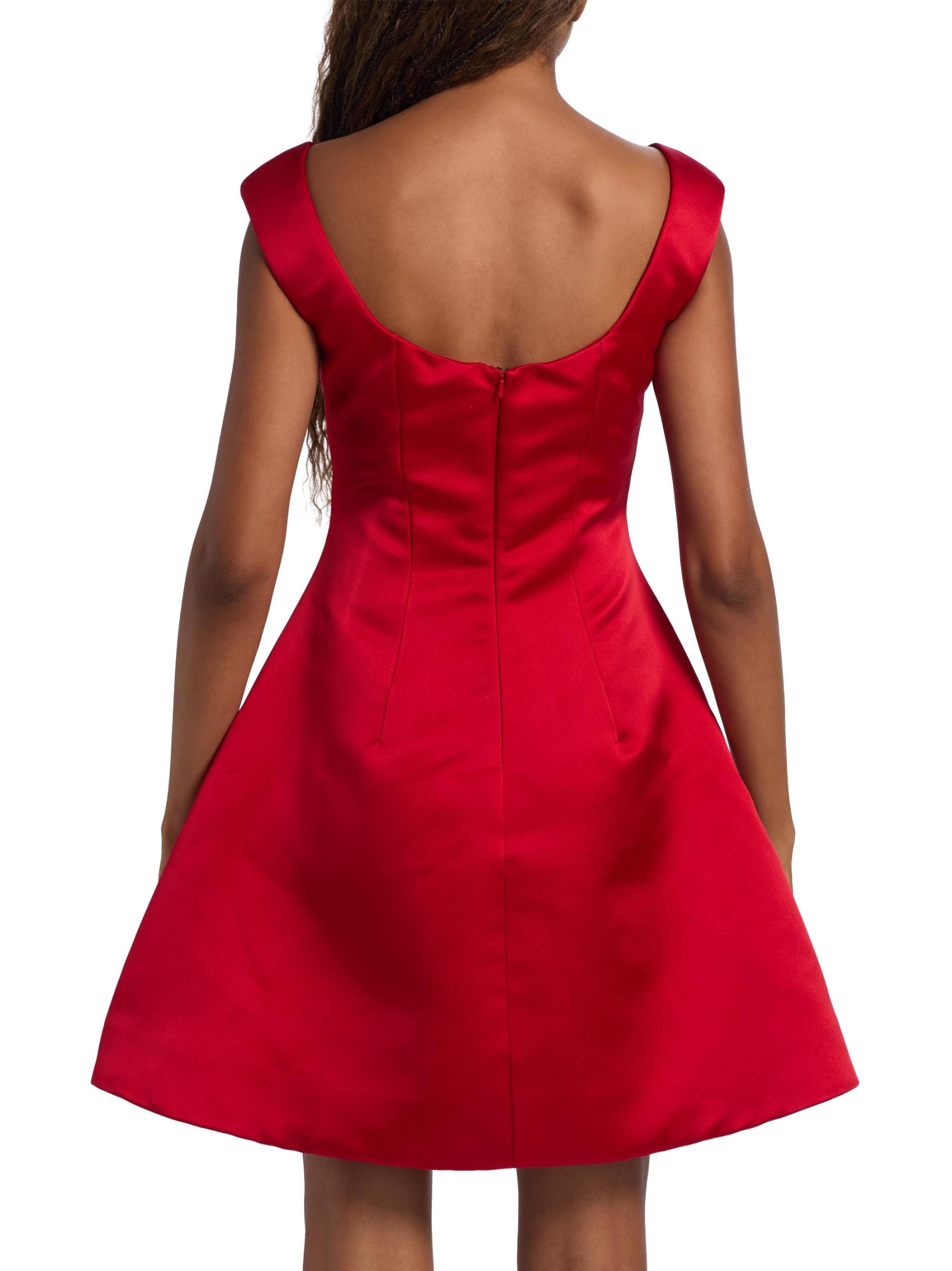 Crafted of luxe Italian silk, Rosie Assoulin's Halo cocktail minidress features an architectural shape, portrait neckline, and semi-off-the-shoulder straps.