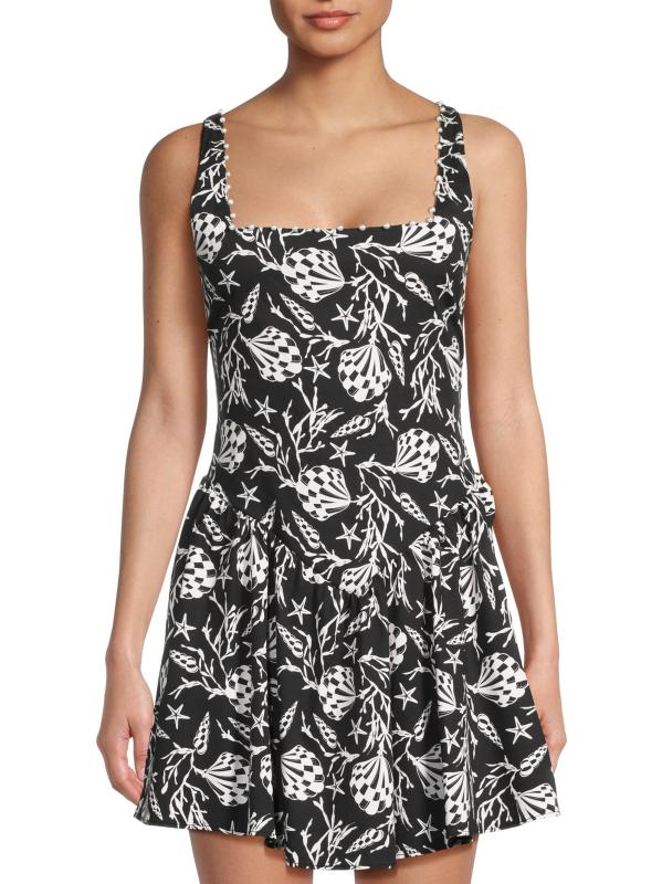 The Harlow minidress from Peixoto is crafted of a stretch-cotton blend and features faux-pearl embellishments on the neck.