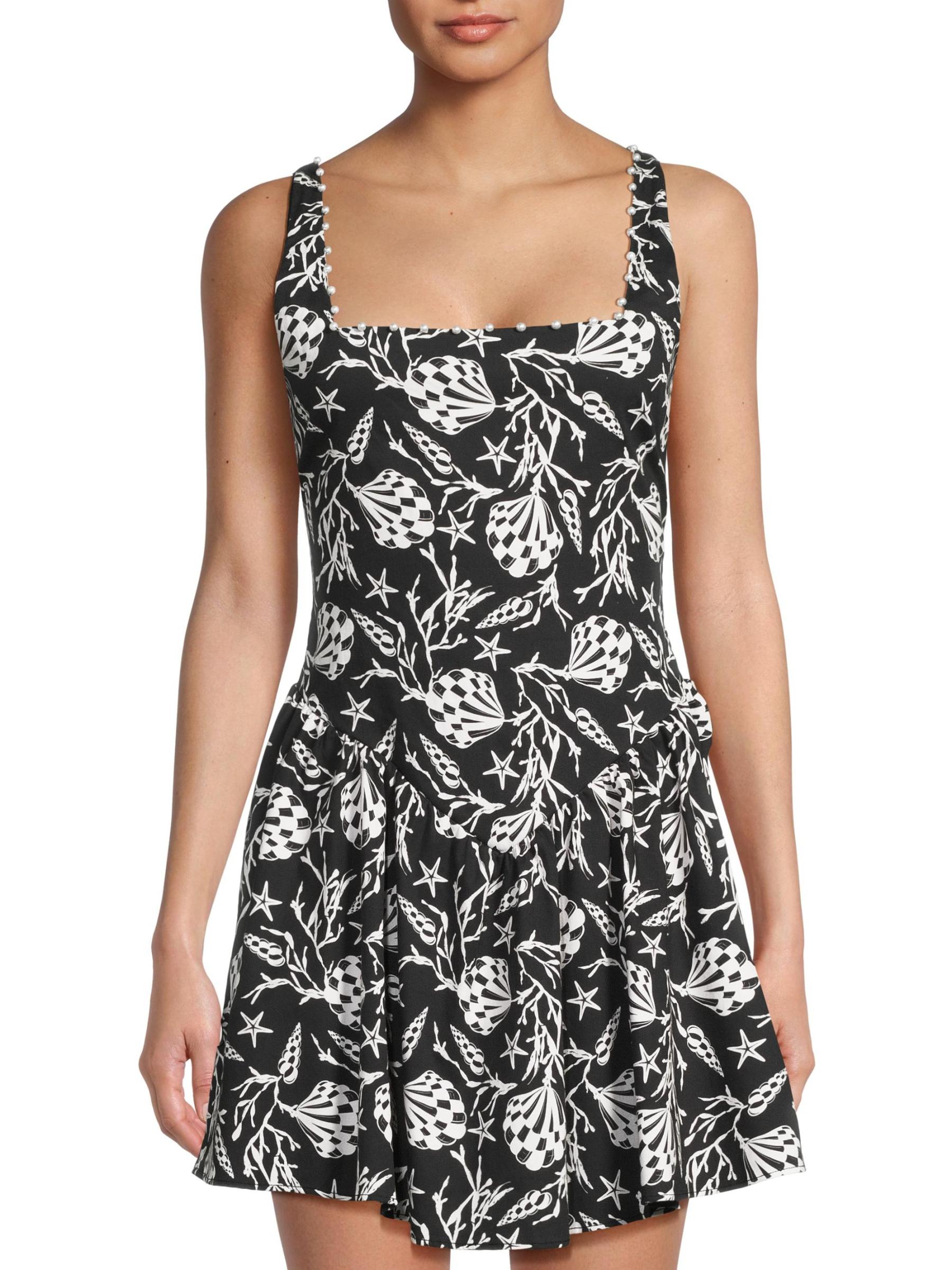 The Harlow minidress from Peixoto is crafted of a stretch-cotton blend and features faux-pearl embellishments on the neck.Square neck Adjustable straps Concealed back zip closure 98% cotton/2% elastane Hand wash Imported