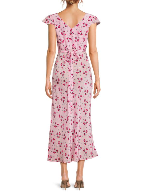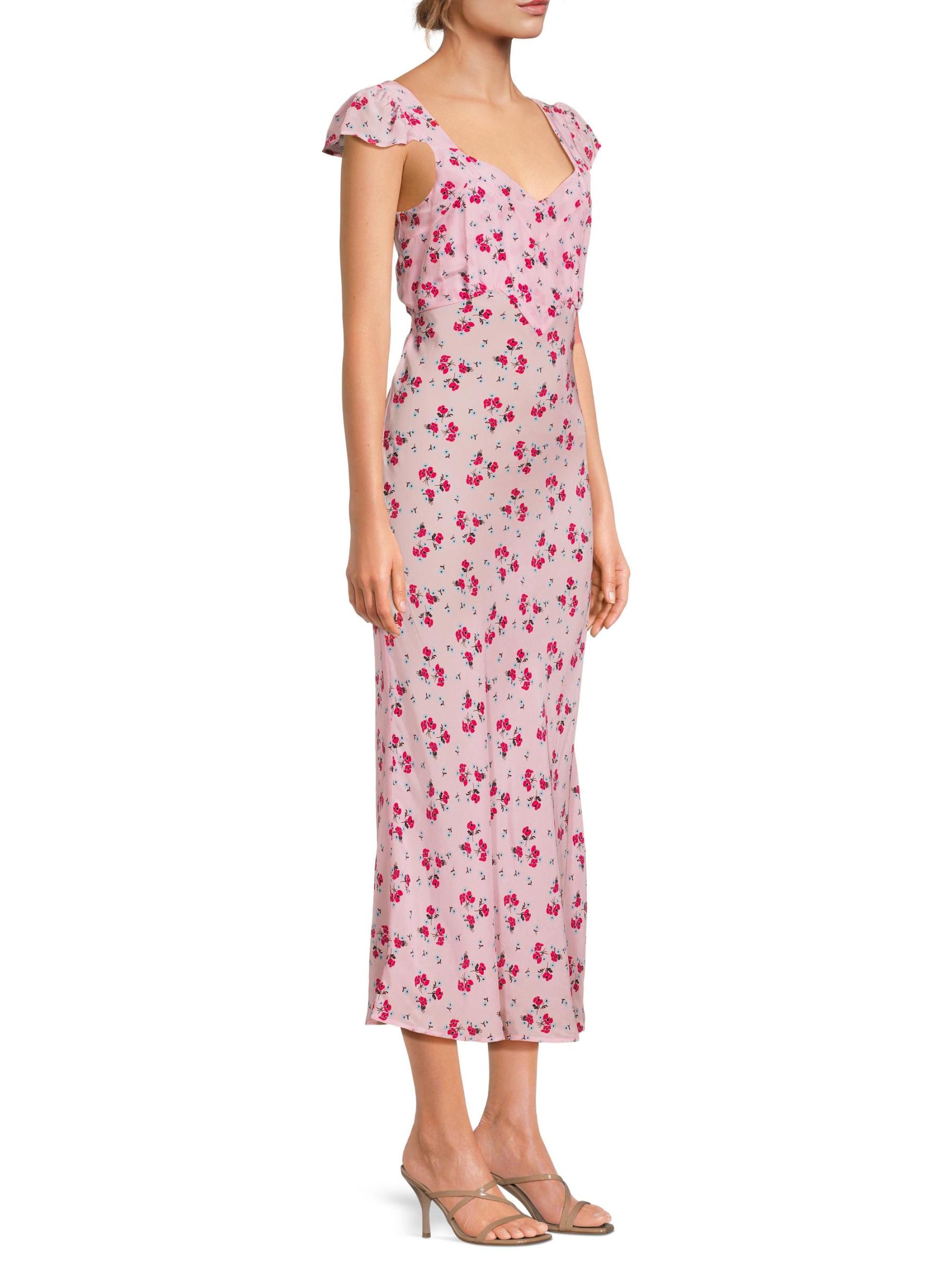From the Hello Sunshine Collection. The Aurora slip midi-dress from Ciao Lucia blooms with a vibrant floral print and features an empire waist. Flutter cap sleeves add a whimsical touch.V-neck Cap sleeves Side zip closure 70% rayon/30% silk Dry clean only Imported