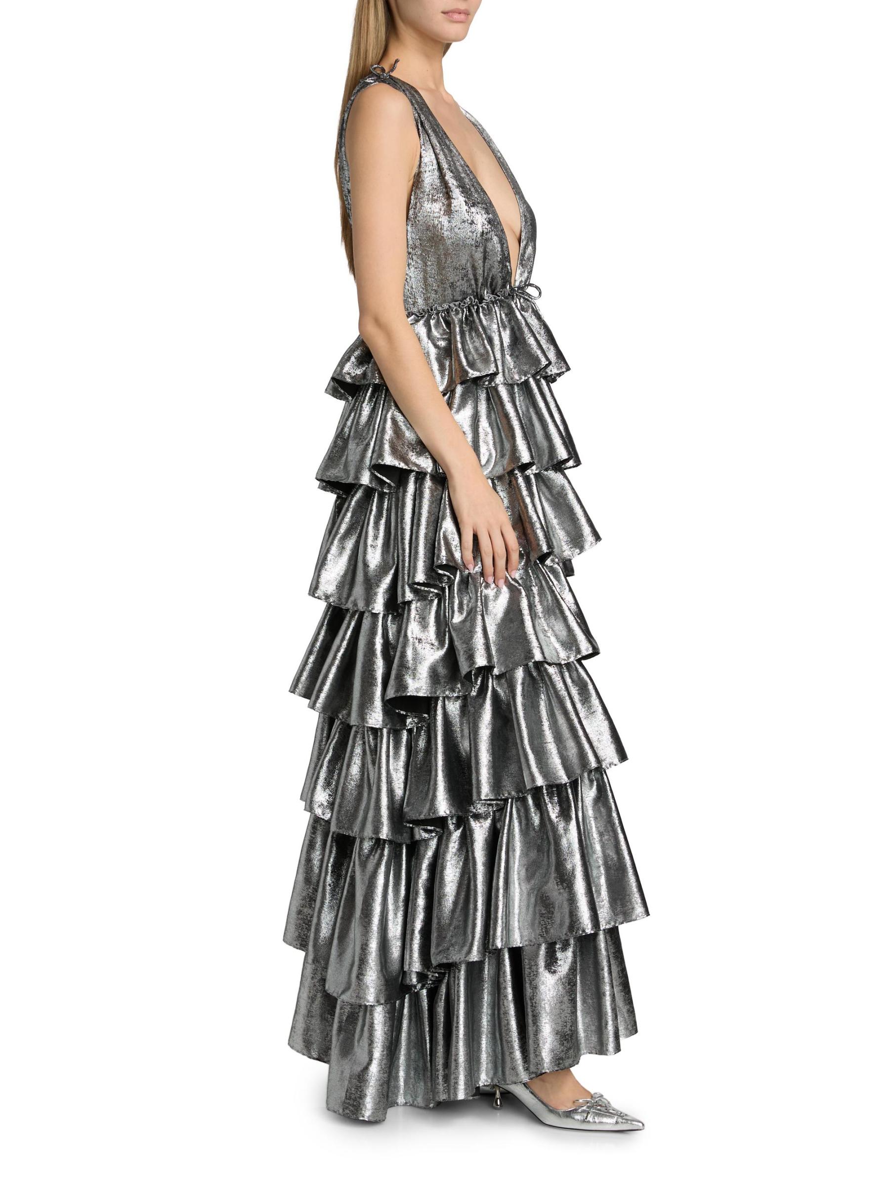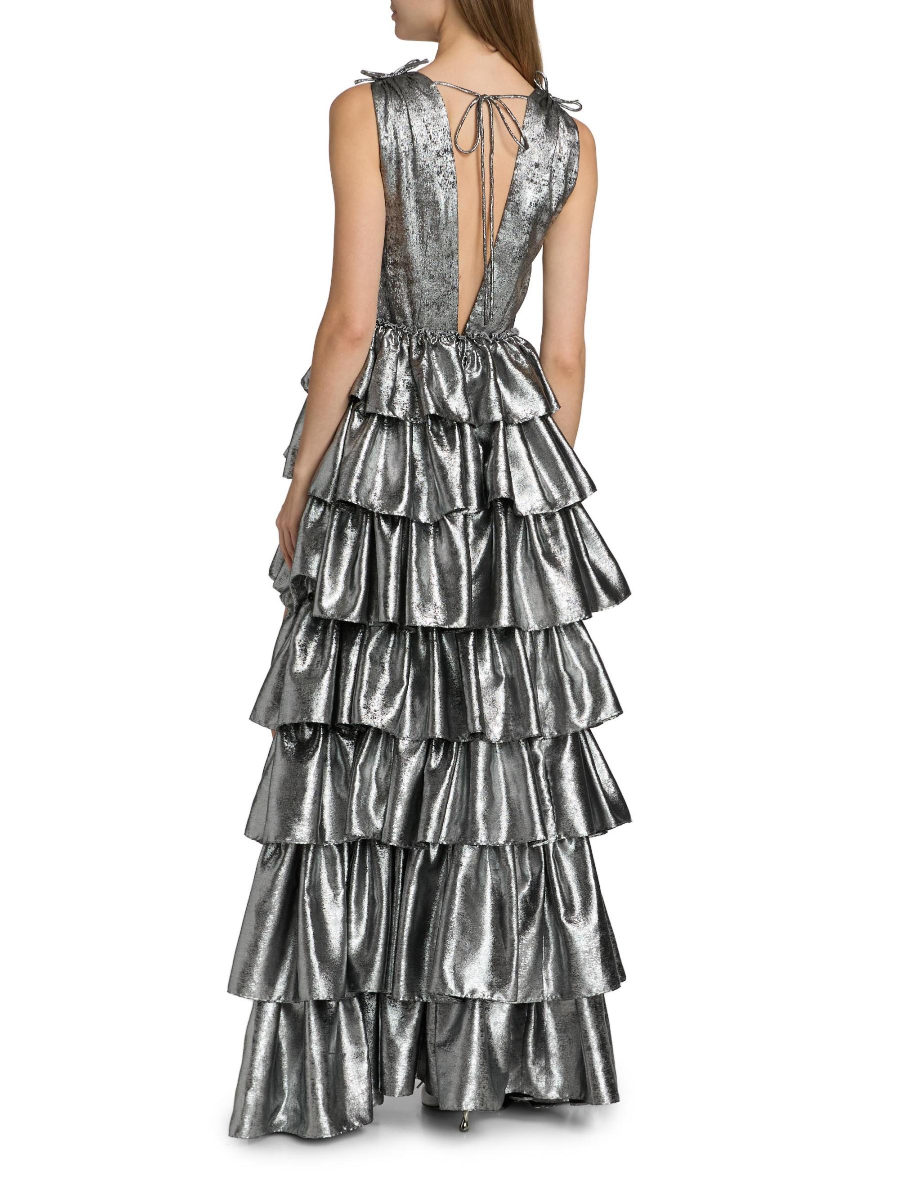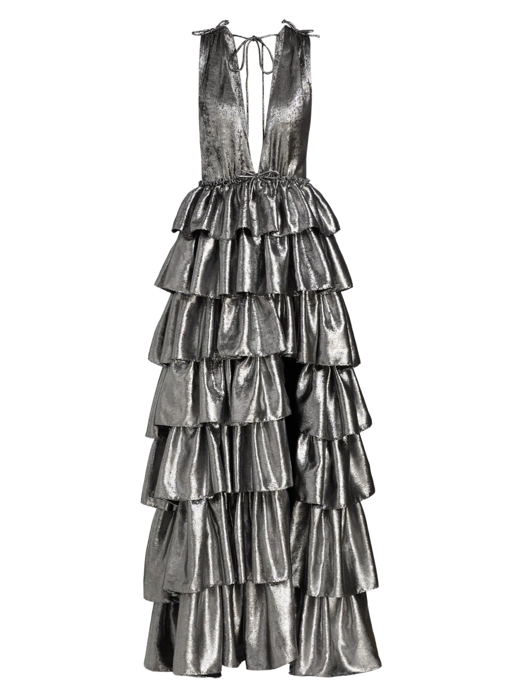 Henriette Metallic Ruffled Tiered Sleeveless Gown