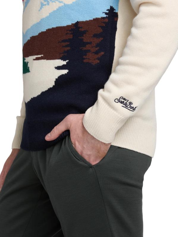 Crafted from a soft wool blend, this MC2 Saint Barth Heron crewneck sweater showcases a striking St. Moritz mountain jacquard design and logo embroidery on the sleeve. The ribbed trim ensures added shape and comfort.