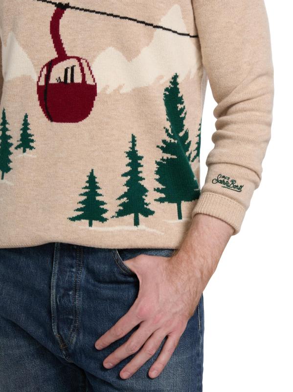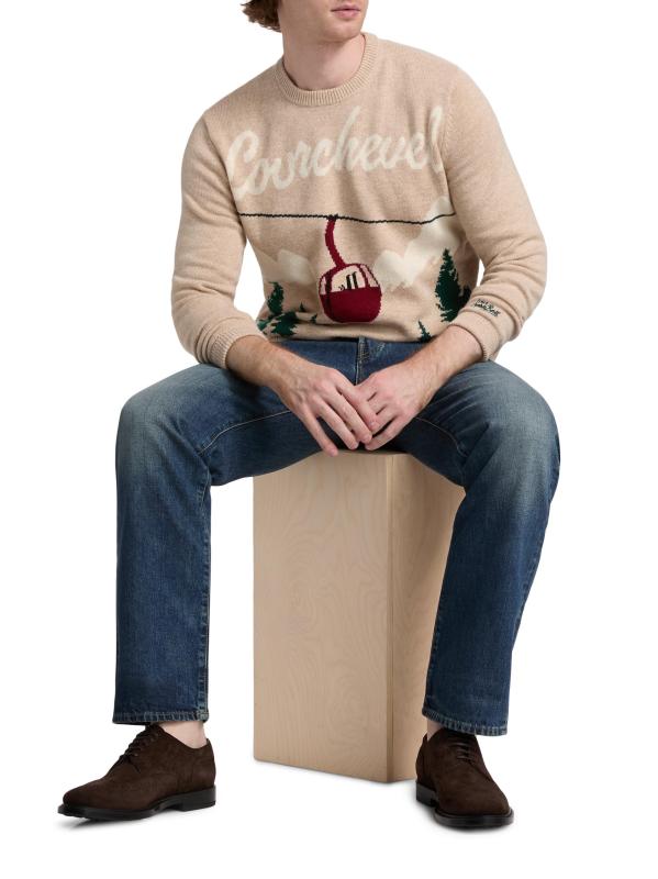 Crafted of a wool blend, the Heron crewneck sweater from MC2 Saint Barth showcases an alpine Courchevel-inspired gondola jacquard design. Ribbed trim lends added shape and comfort to this style.