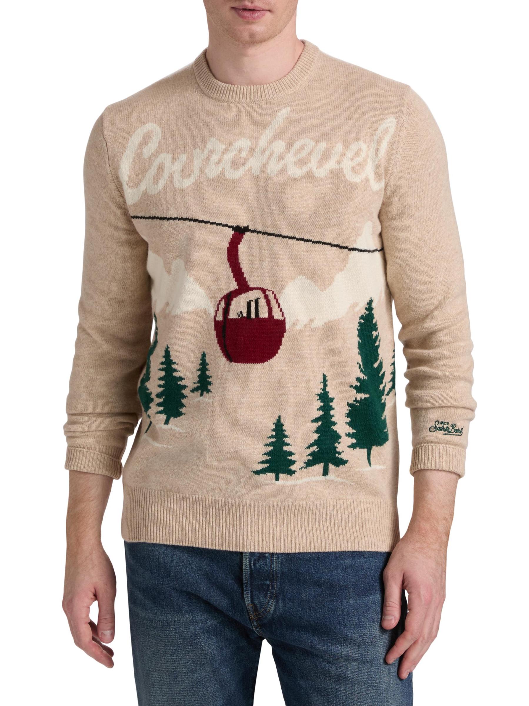 Crafted of a wool blend, the Heron crewneck sweater from MC2 Saint Barth showcases an alpine Courchevel-inspired gondola jacquard design. Ribbed trim lends added shape and comfort to this style.Crewneck Long sleeves Ribbed trim Pulls over 40% wool/25% viscose/25% nylon/10% cashmere Hand wash Imported