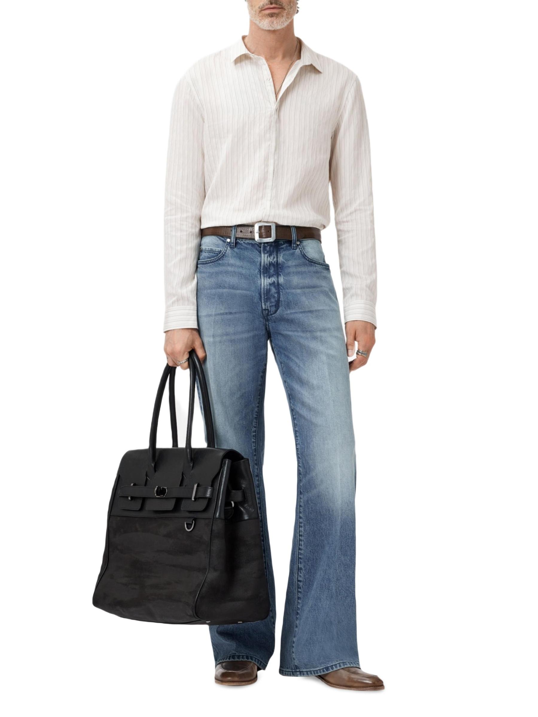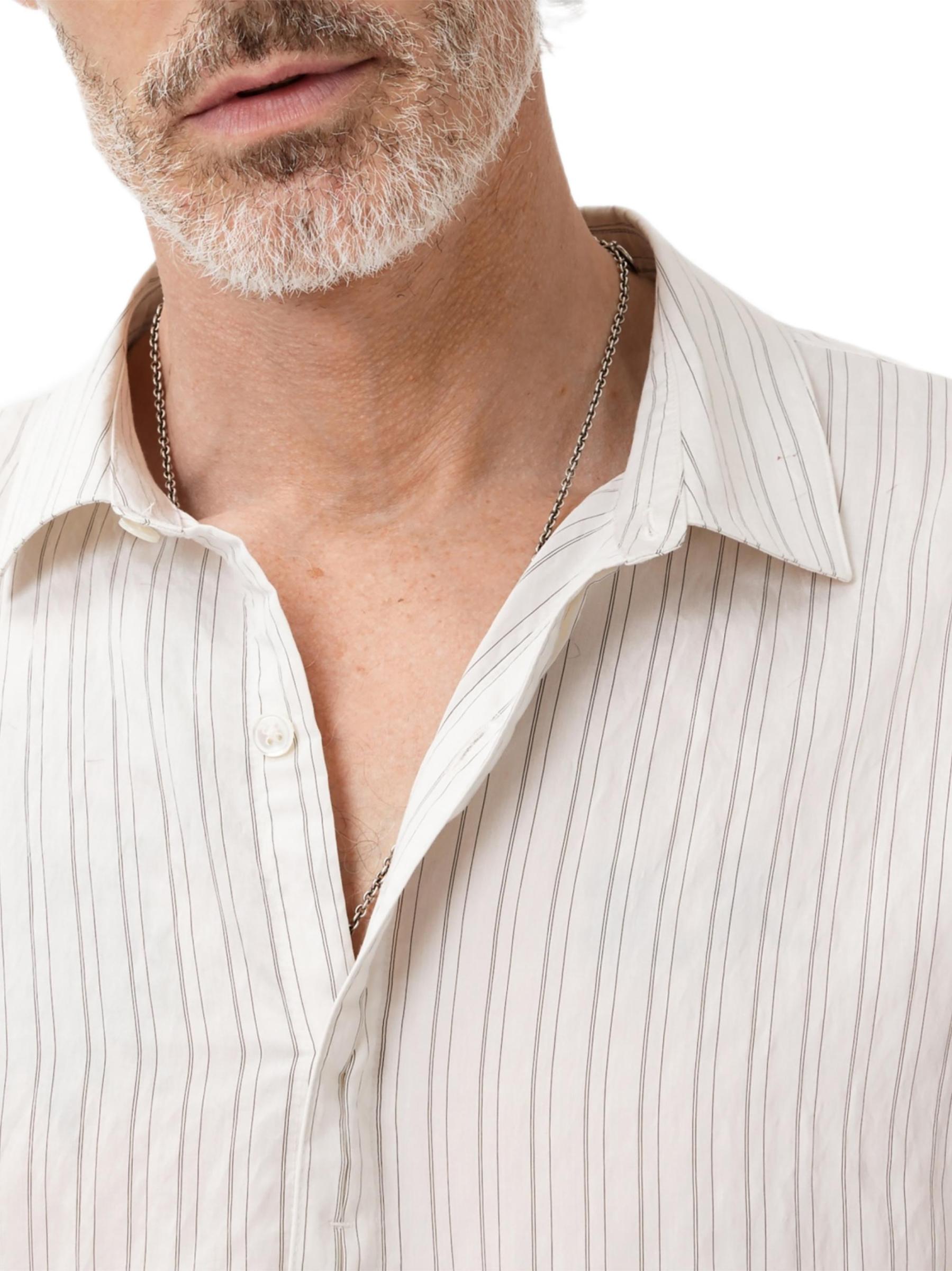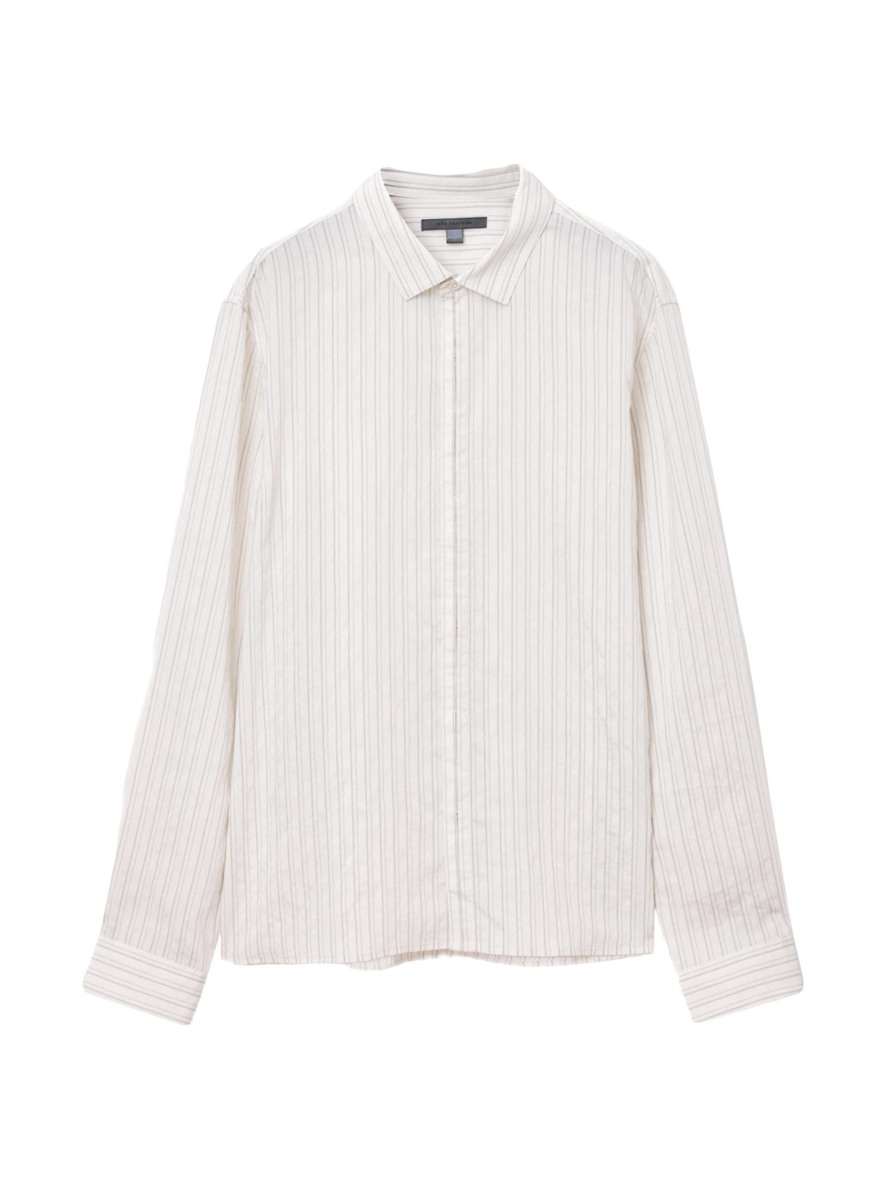 Crafted of a silky modal blend, the Hickory button-front shirt from John Varvatos is styled with subtle pinstripes.Spread collar Long sleeves button cuffs Button front closure 81% modal/17% polyamide/2% cupro Dry clean Imported