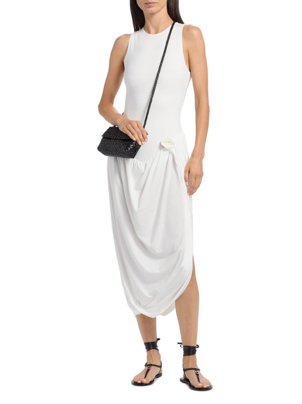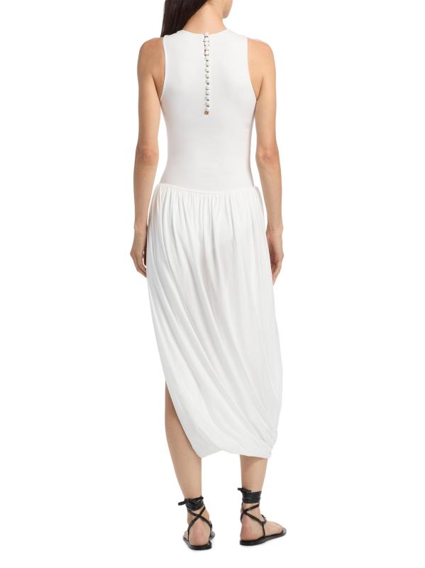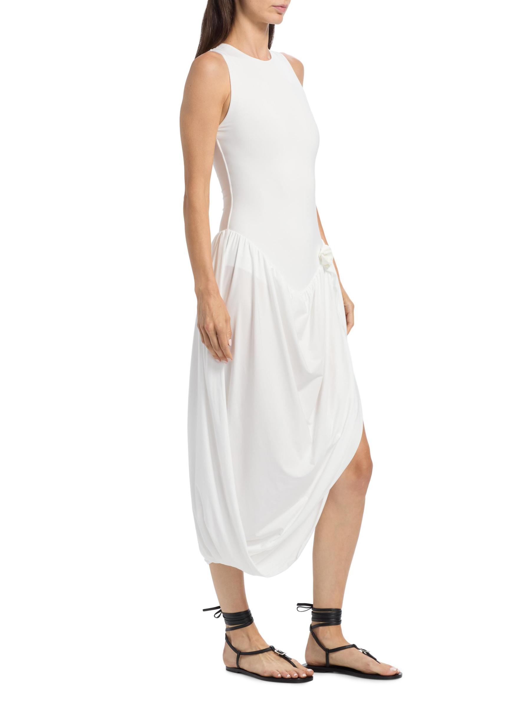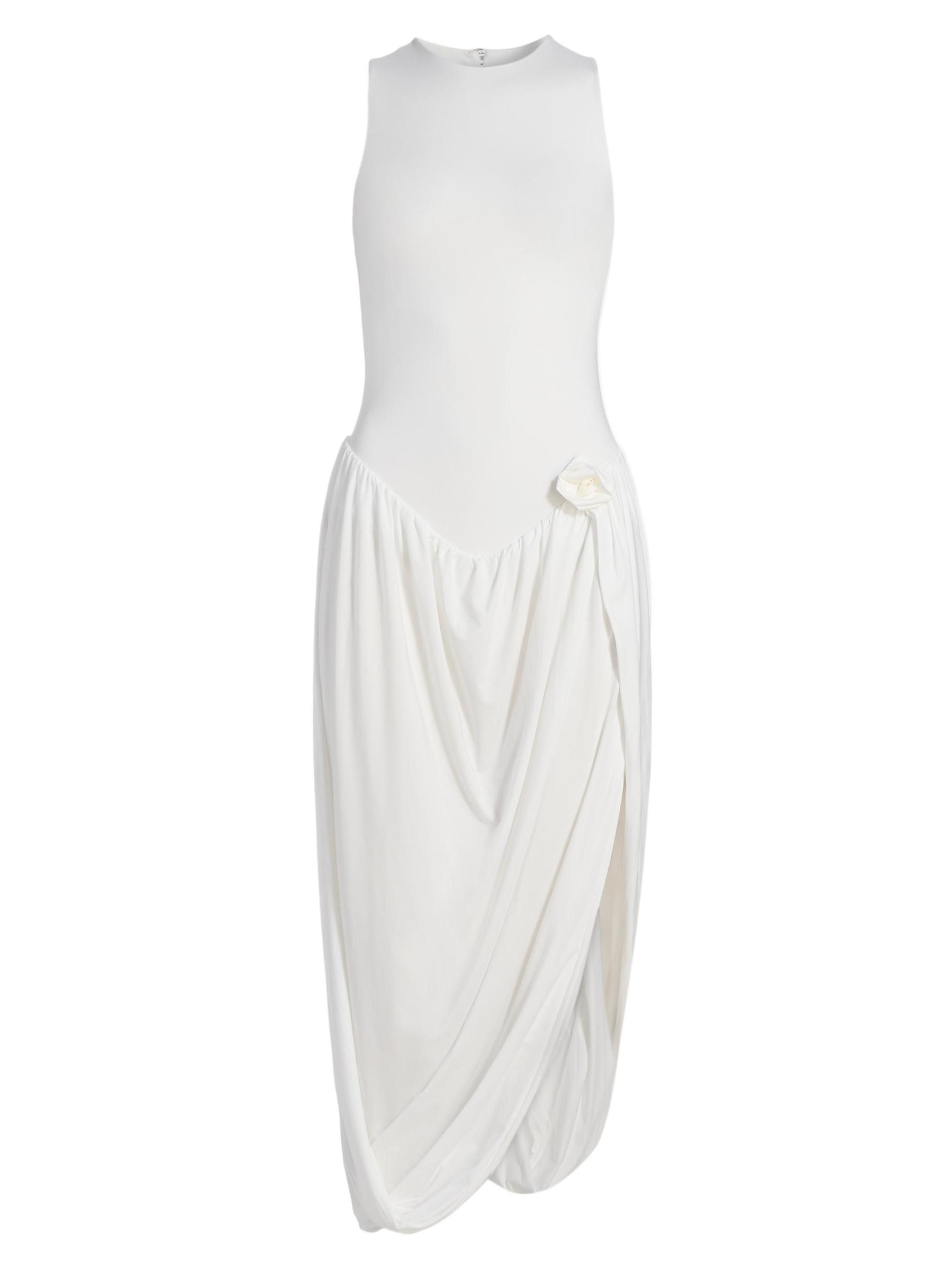 From the High Summer Collection. The Marsalina dress from Maygel Coronel combines a form-fitting bodice with a dropped waist and an asymmetric draped skirt. A hip rosette detail completes the look.Scoopneck Sleeveless Pulls over 78% polyamide/22% elastane Hand wash Imported