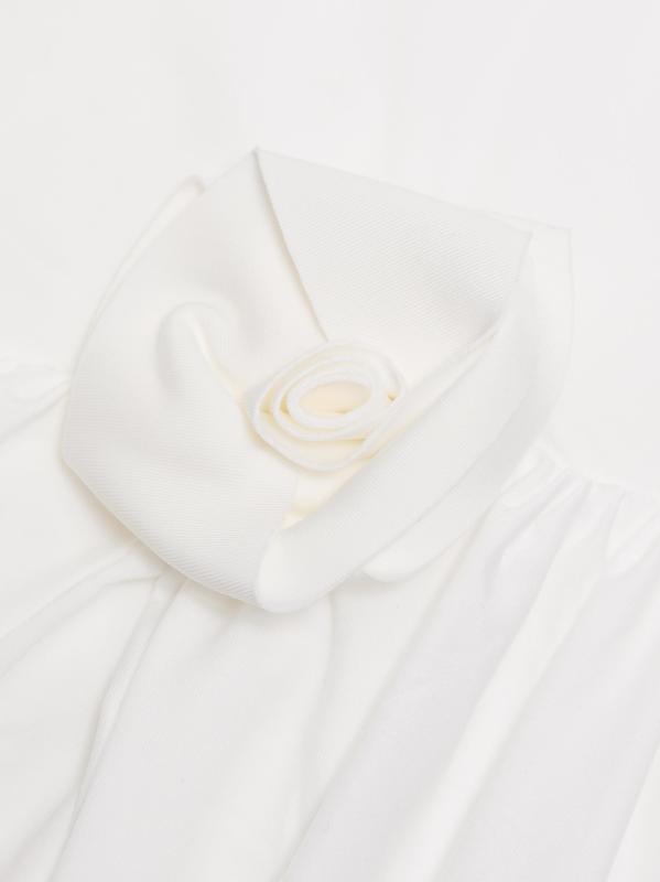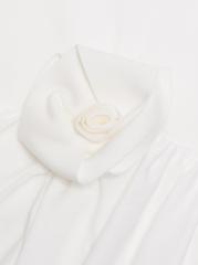 From the High Summer Collection. The Marsalina dress from Maygel Coronel combines a form-fitting bodice with a dropped waist and an asymmetric draped skirt. A hip rosette detail completes the look.