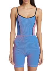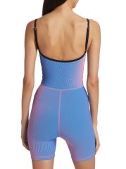 Designed with two-tone ribbing, Bum Athletics’ Holographic romper features contrast trim to define the body-con silhouette.Scoopneck Adjustable shoulder straps Seamed waist Pulls on 65% nylon/12% polyester/23% spandex Machine wash Imported