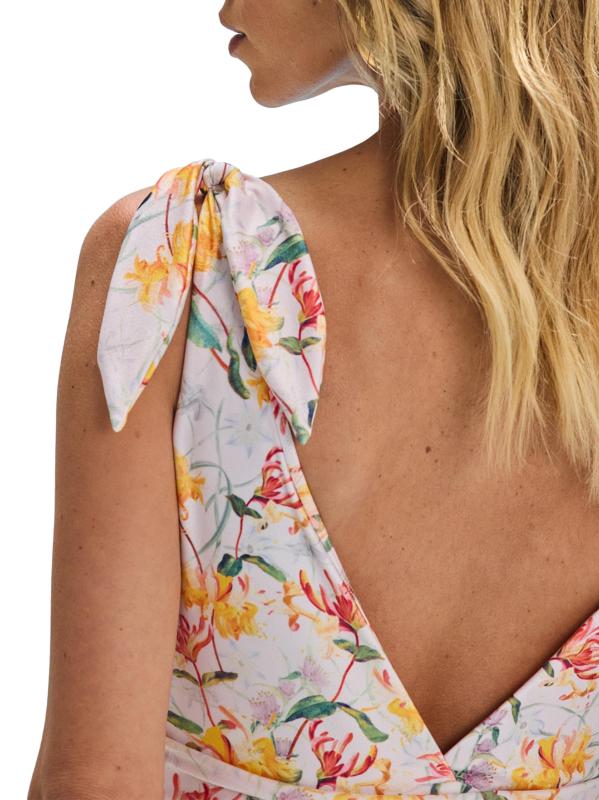 The Honey Flower one-piece swimsuit from PatBO blooms with a floral print and features a plunging neckline and gathered waist.Plunging V-neck Sleeveless Back clasp closure 82% Polyamide/18% elastane Dry clean Imported