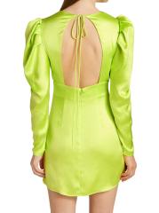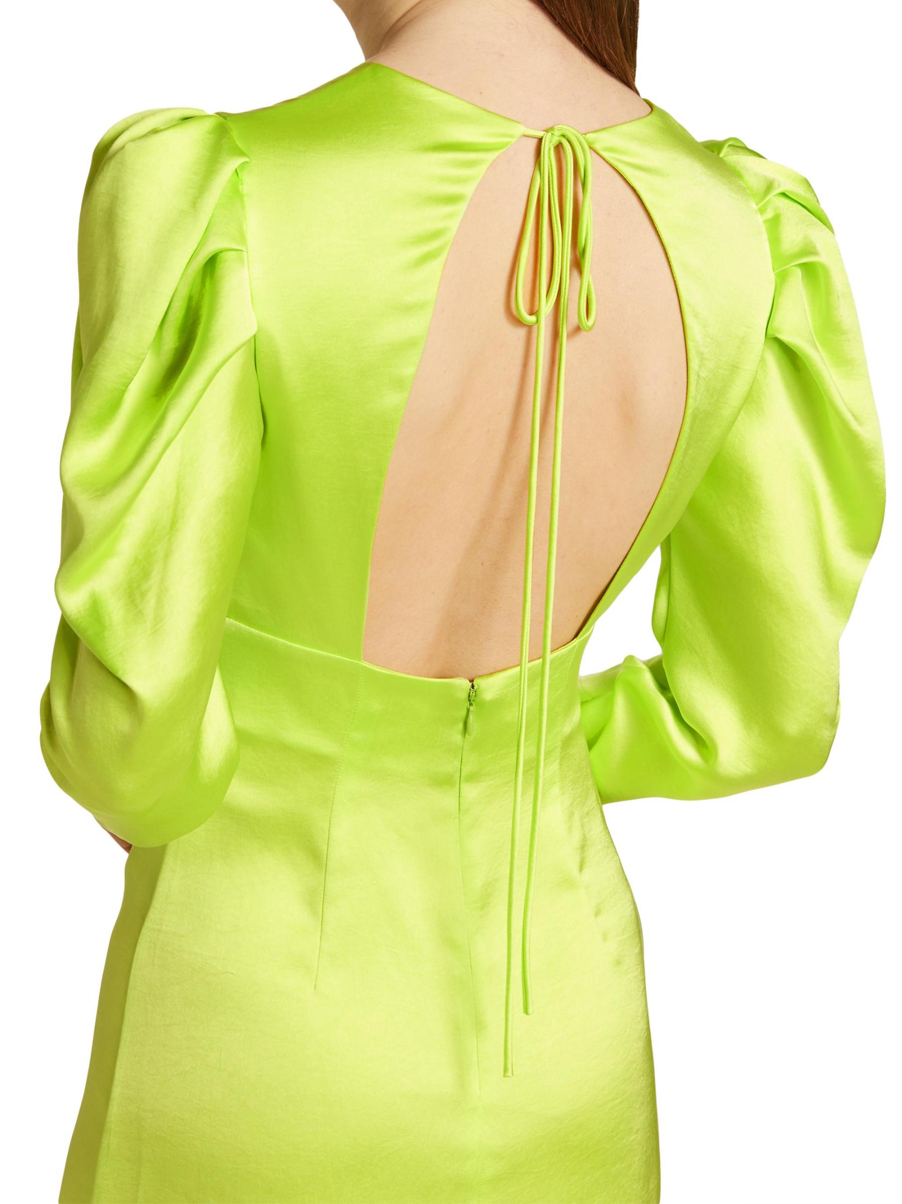 With a luxe satin finish, this puff-sleeve minidress features a backless design with a self-tie accent and tailored dart seams at the front skirt.Jewel neck Long sleeves Back zip closure Self-tie at nape 100% polyester Dry clean Made in Italy