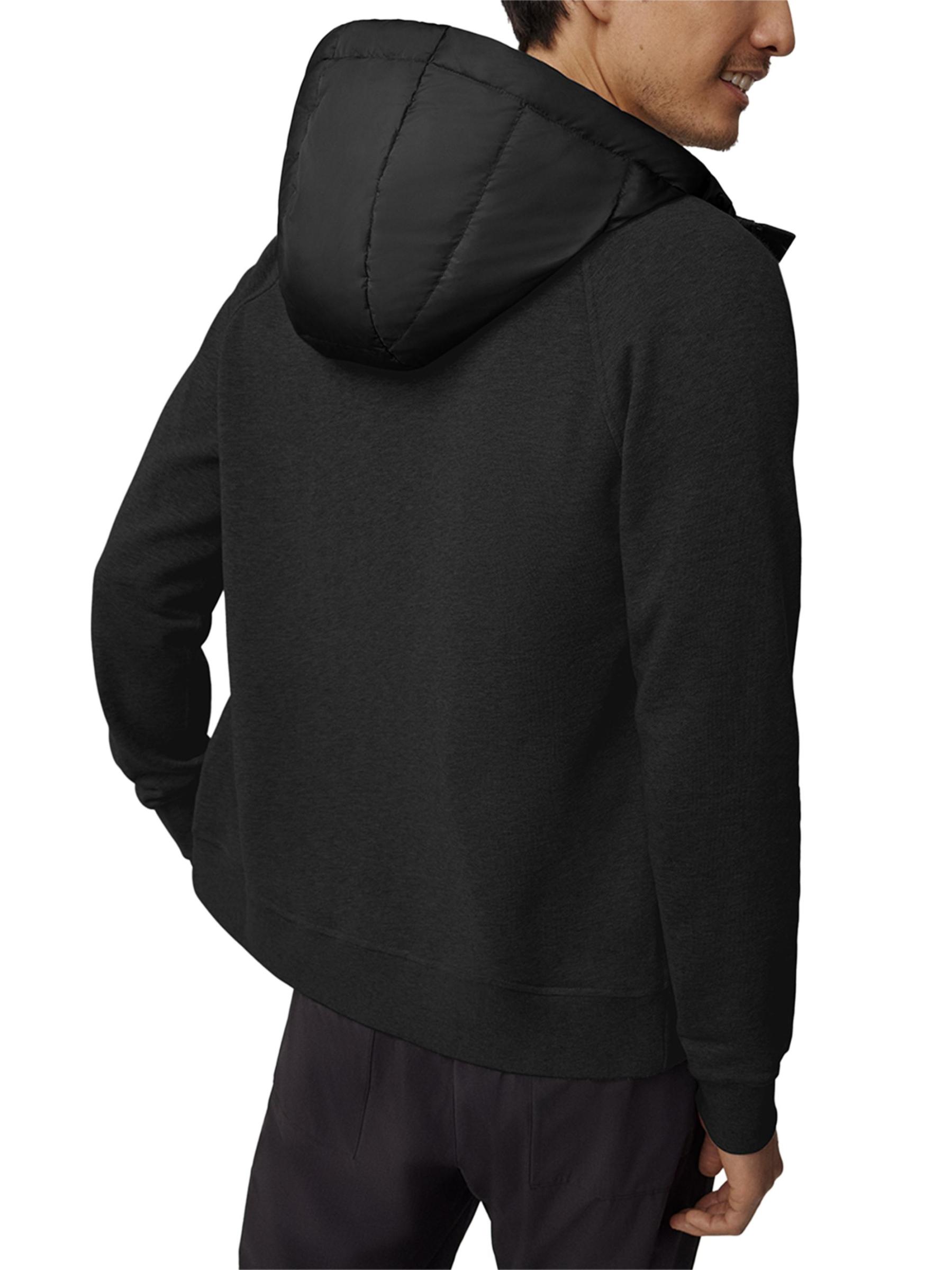 Pairing a down-filled bodice with sporty cotton sleeves, Canada Goose’s Hybridge® Huron jacket features zip construction and lightweight warmth.Attached drawstring hood Long sleeves, rib-knit cuffs Two-way zip front closure Side welt pockets Rib-knit hem 100% Cotton Fill: 675 fill power 80% goose down/20% feathers Dry clean Imported