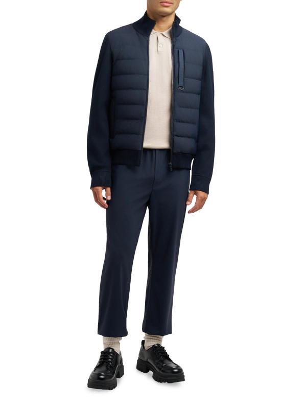 From the Hybrids Collection. This Kamet Hybrid jacket from Moose Knuckles is cut in a slim fit and styled with rib-knit trim.Stand collar Long sleeves One zip pocket and two welt pockets Rib-knit trim Front zip closure 72% viscose/28% polyester Lining: 76% nylon/24% elastane Hand wash Imported
