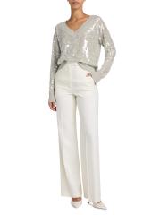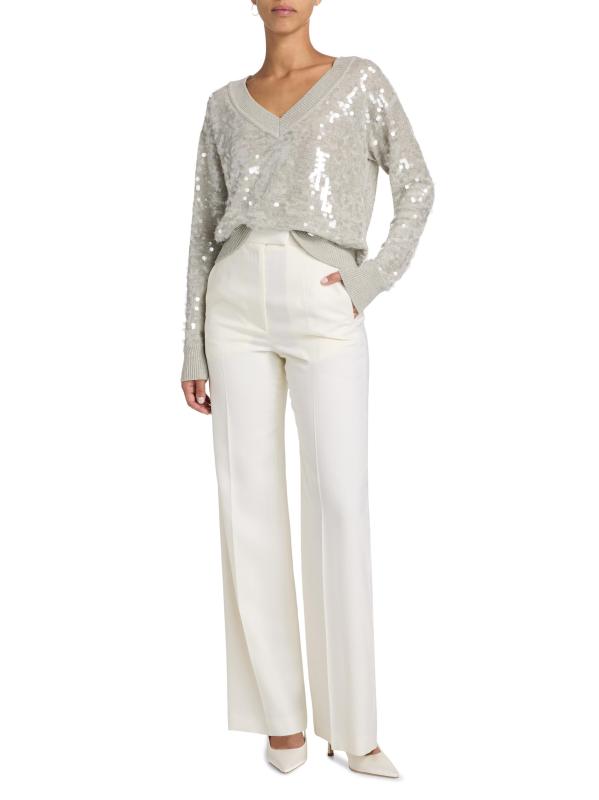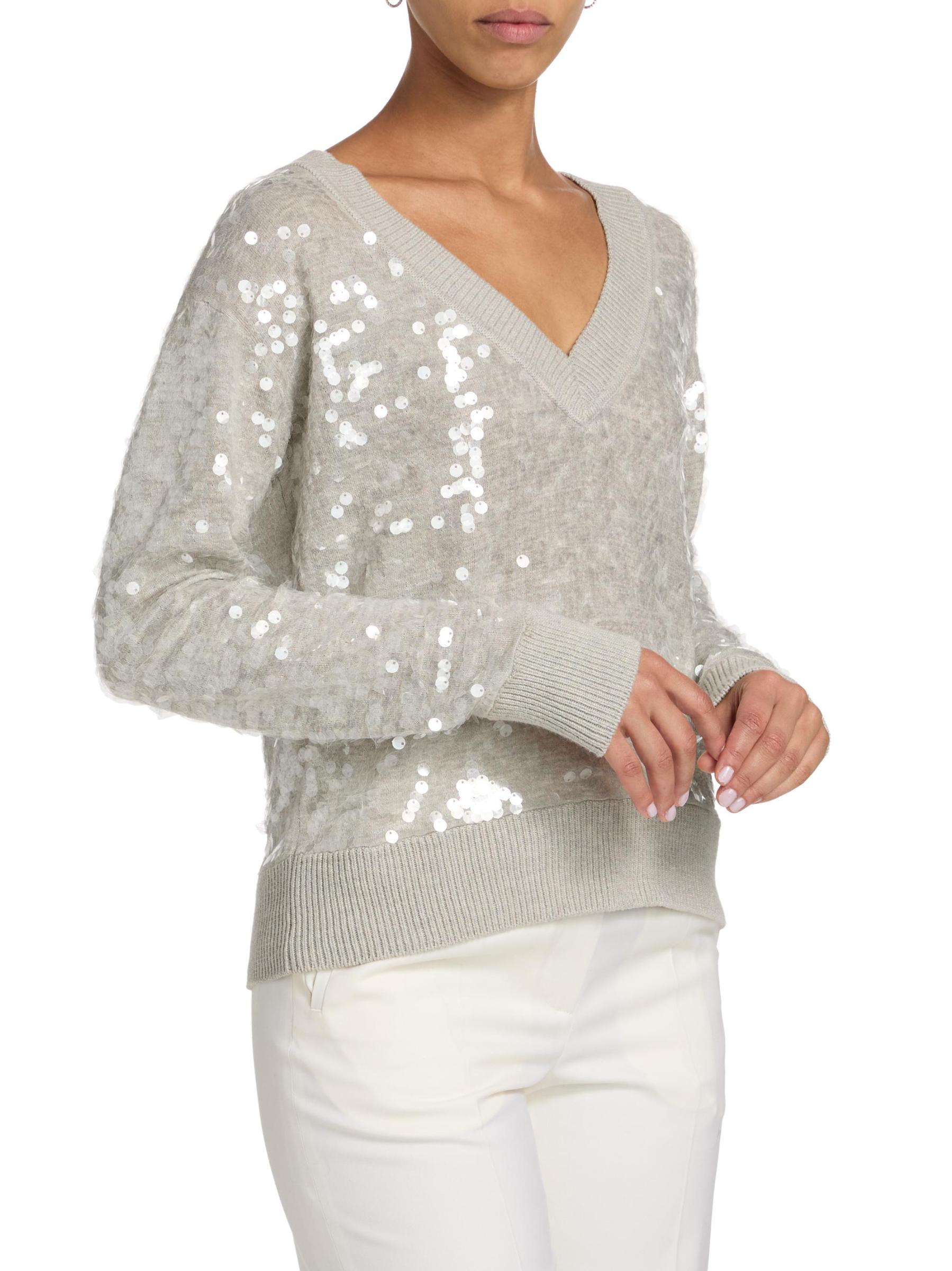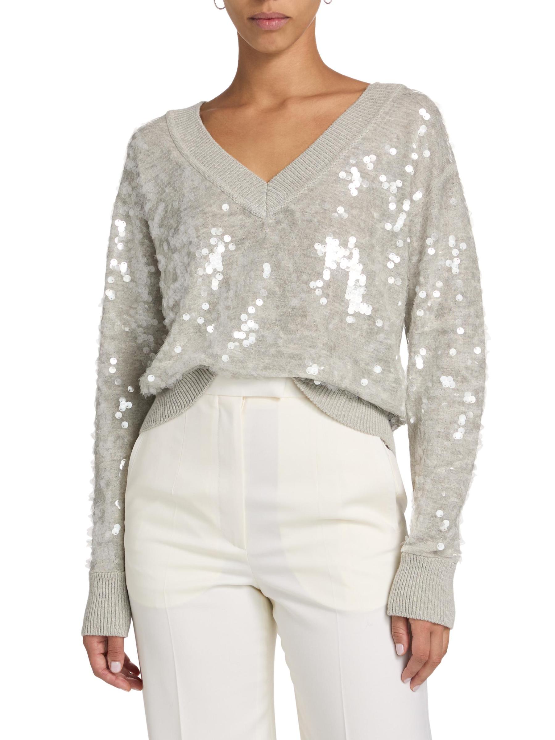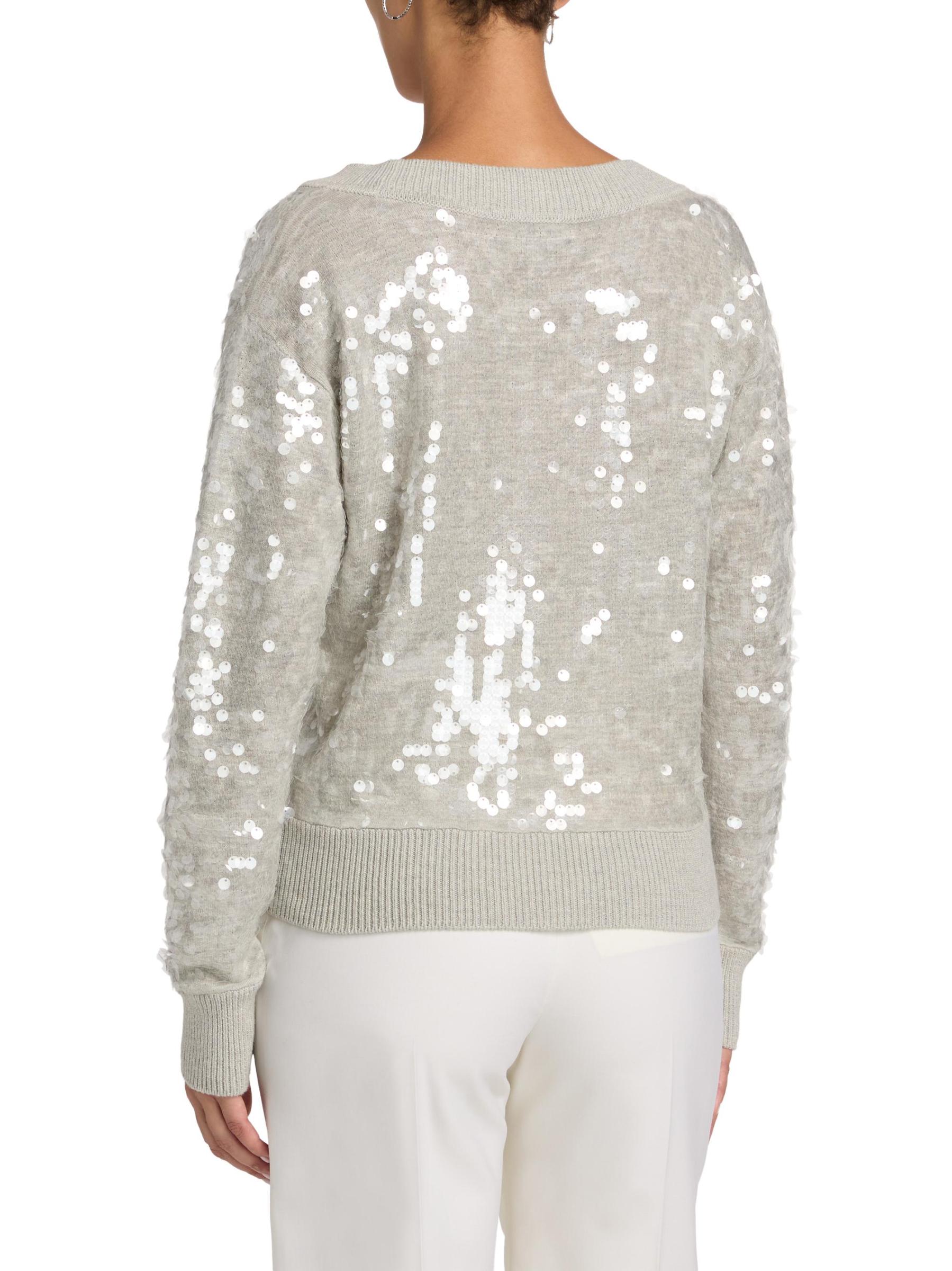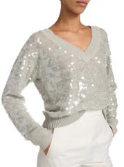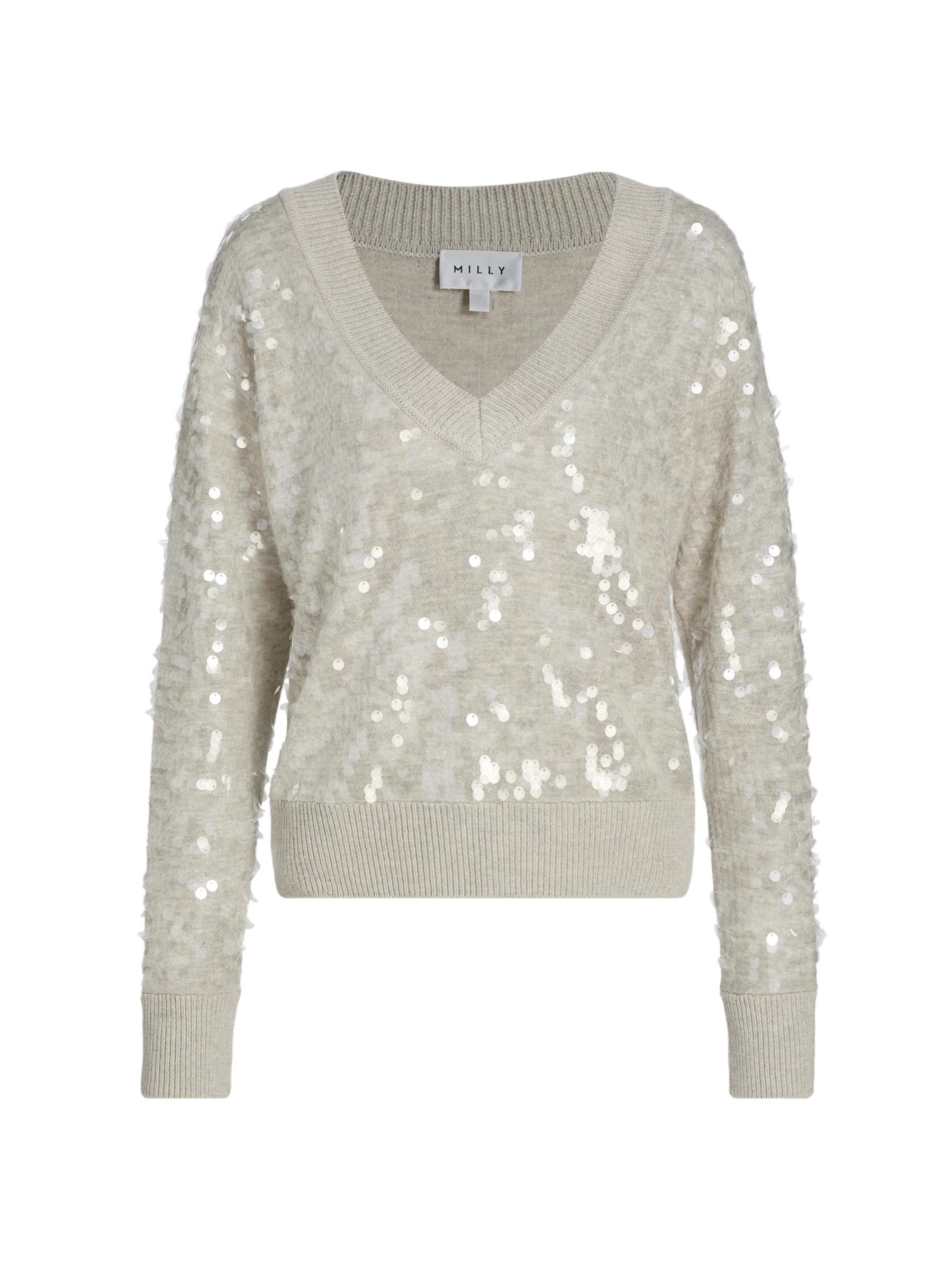 Milly's Ilaria sequined sweater is crafted of a cotton blend and styled with ribbed trim.V-neck Long sleeves Ribbed cuffs and hem Pulls over 60% cotton/40% viscose Dry clean Imported